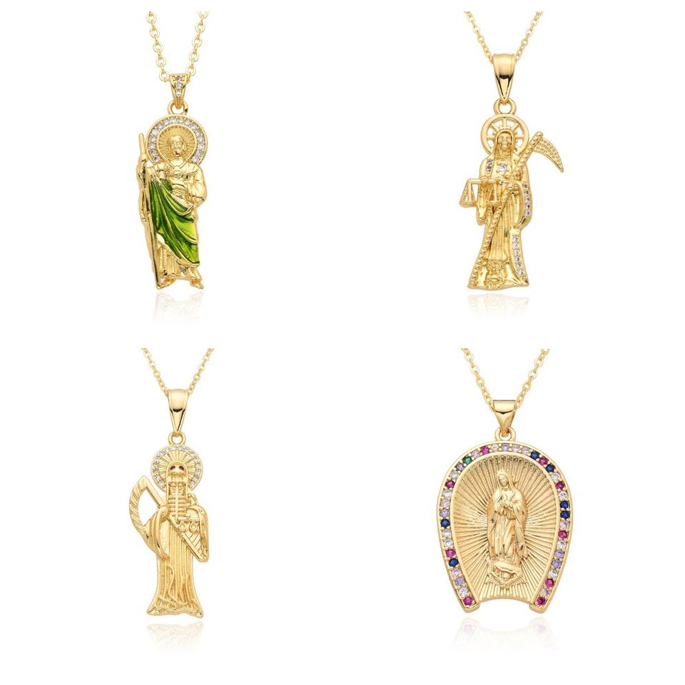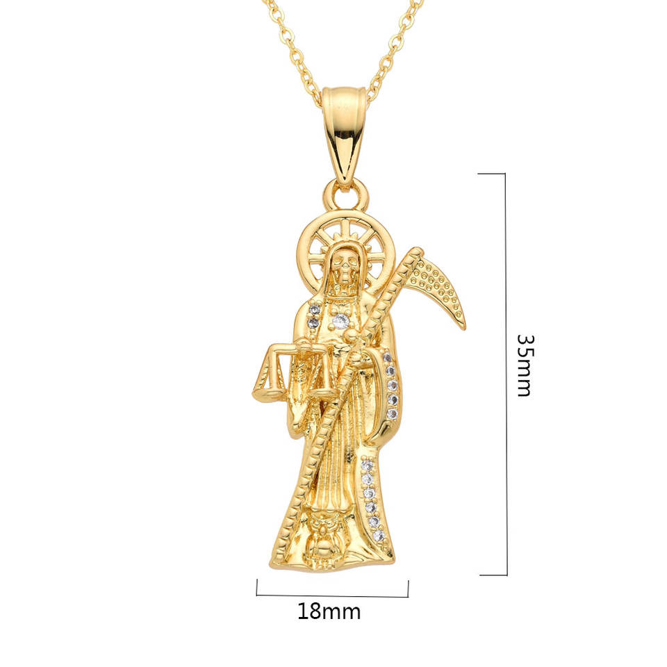 QIKU Punk mietitore ciondolo falce placcato oro rame zircone collana con teschio di morte Christian lusso gioielli di Halloween donne uomini
