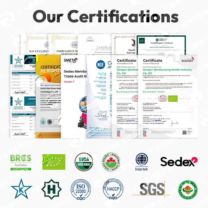 ISO 22000, HACCP, Halal, Kosher, Biologico USDA / Biologico UE (Opzionale)