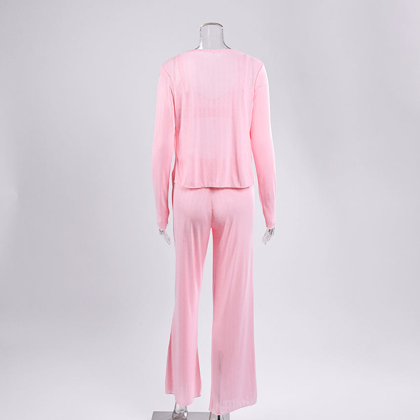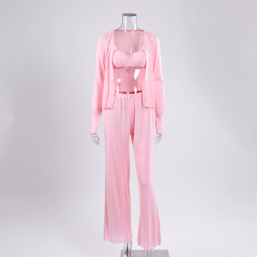 Abbigliamento da notte in maglia QINSI in tinta unita semplice abbigliamento da notte a maniche lunghe Set pigiama 3 pezzi camicia da notte primavera donna