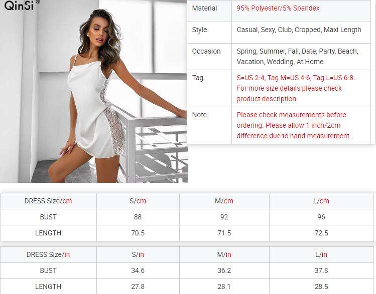 QINSI White Sleep Satin Night Dresses Square Neck Sleeveless Mini Laced Night Dresses for Woman Embroidery Satin Night Dresses