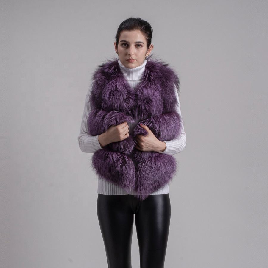 QIUCHEN- QC8001-2 Real fox Fur Vest Natural Fur Gilet Women Short Vest fox Fur Fashion Hot Sale