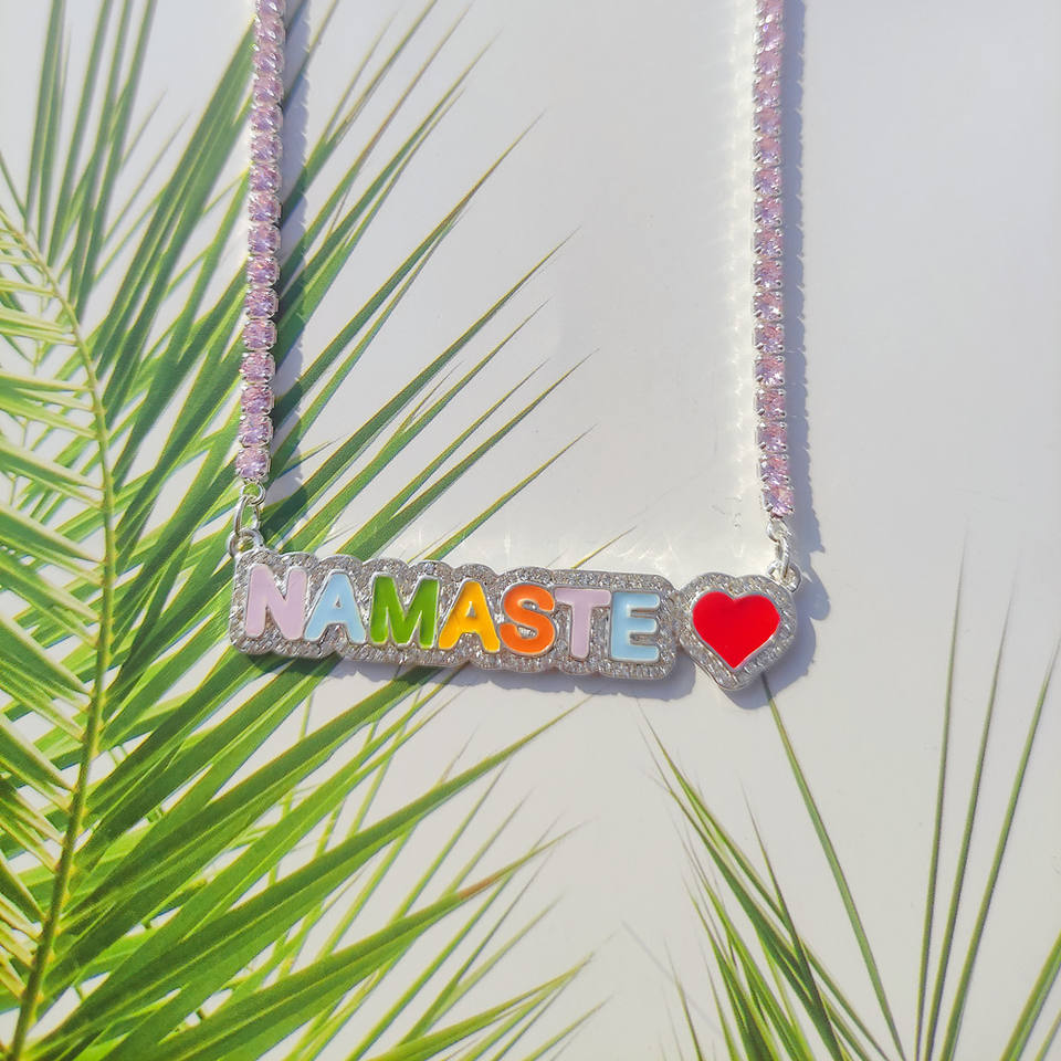 QIUHAN Pave Outline Tennis Chain 5A Zircon Pendant Necklace Custom Rainbow Name Enamel Necklace