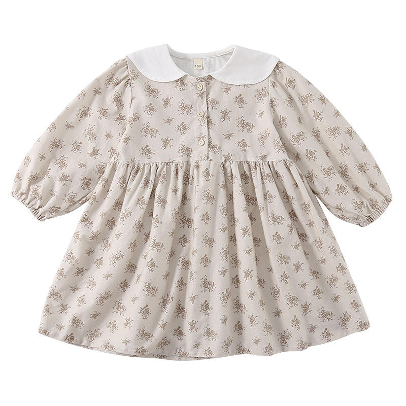 QM2025 Spring New Arrival Infant Toddler Girls Flower Print Dresses Little Baby Princess Dress Clothing