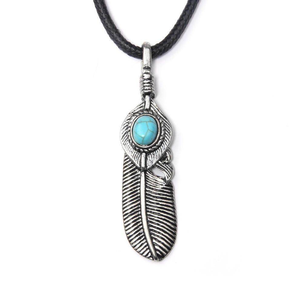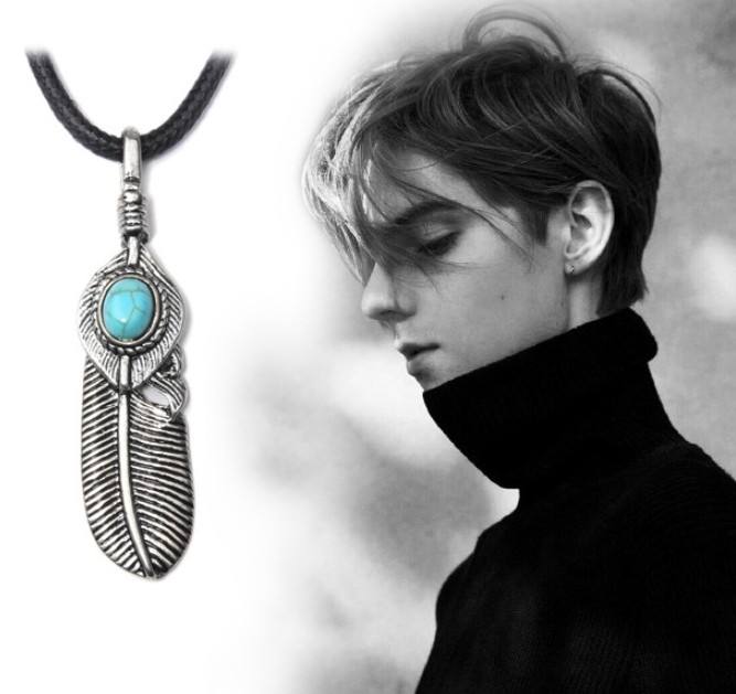 QN006 carattere Individuale marea maschio joker piuma richiede collana di pietra pino collana che ristabilisce i sensi antichi in pelle corda