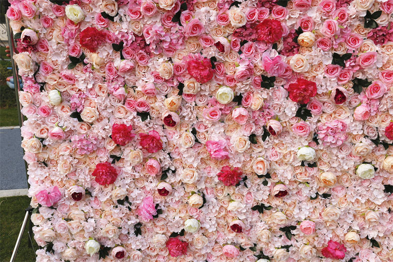 QSLH Ti448 White Gradient Pink Flower Wall fondale muro di fiori decorativi artificiali di seta per lo sfondo del banchetto dell'evento del partito
