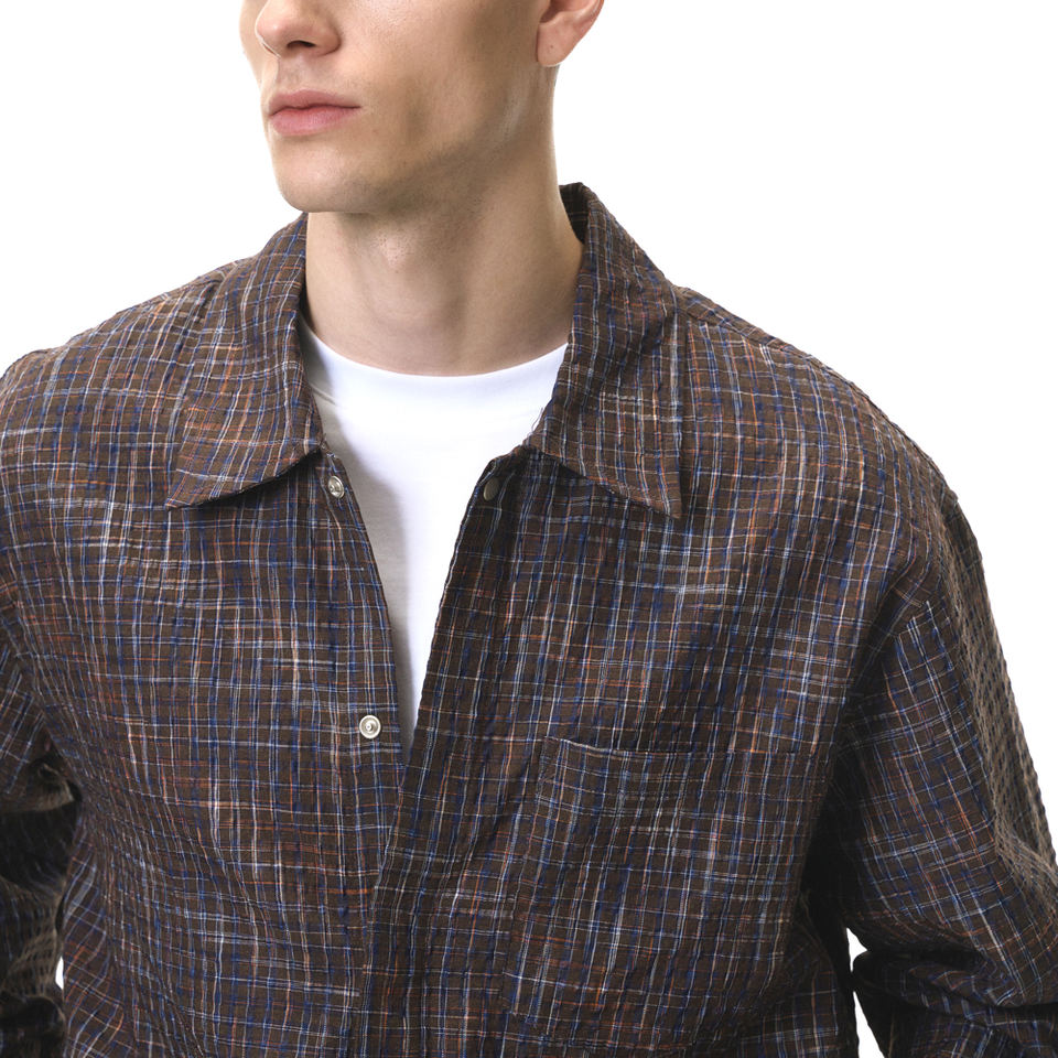 QUICKSHOW Streetwear Seersucker Plaid Shirt Manufactured Custom OEM Label Print Shirts for Men