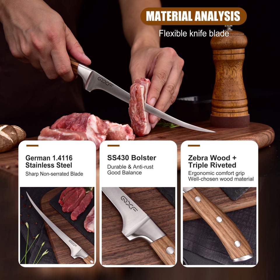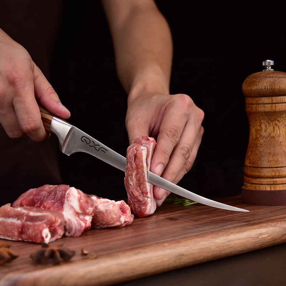 QXF Coltello da Disosso in Acciaio Inossidabile Tedesco di Alta Qualità, Coltelli per Filettare Pesce con Manico in Legno di Zebra