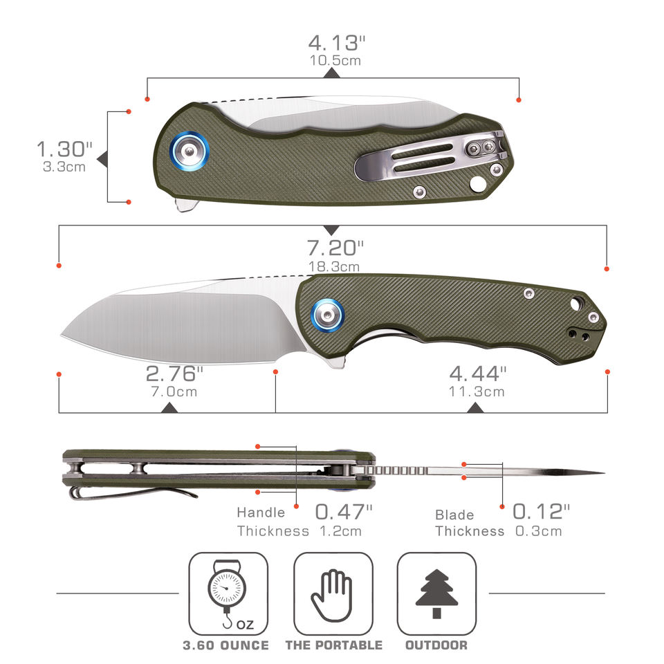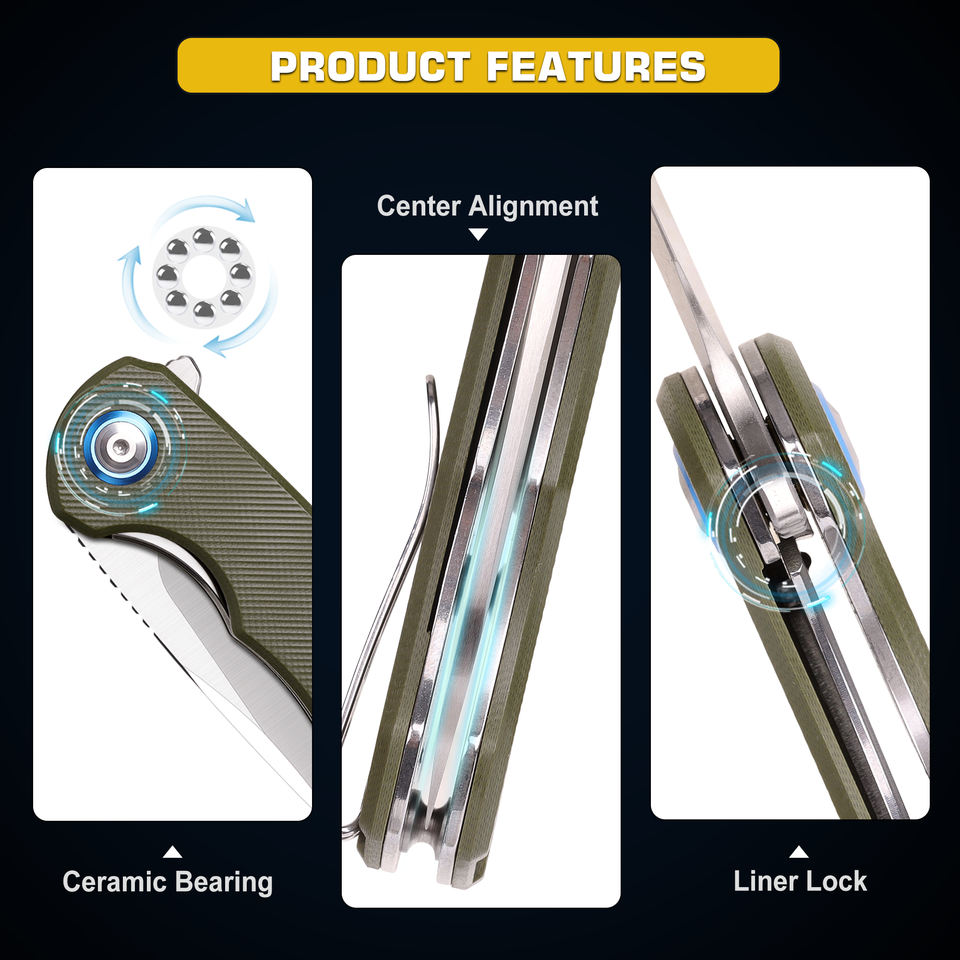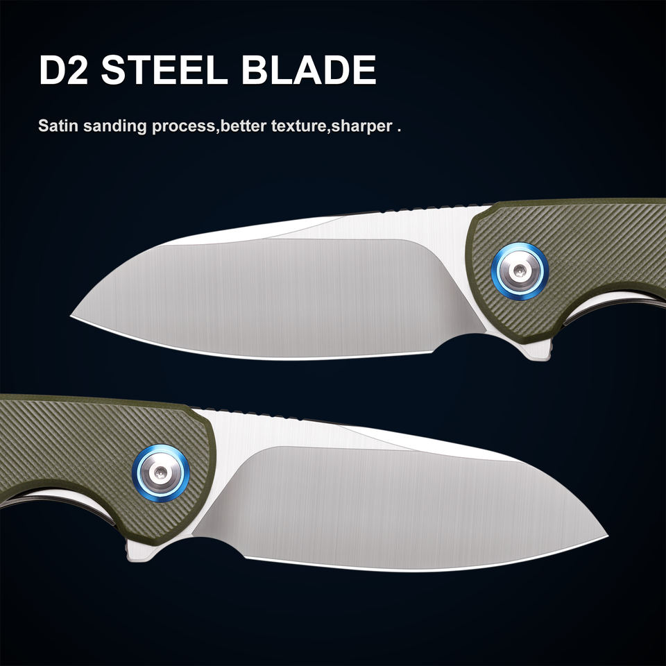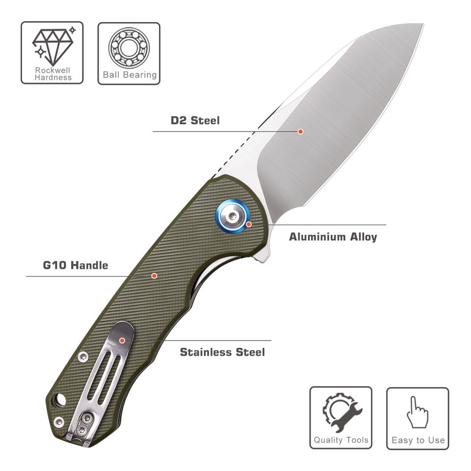 QY420902 Green High Quality G10 Handle Pocket Knife D2 Steel Blade EDC Self Defense Emergency Survival Folding Knife