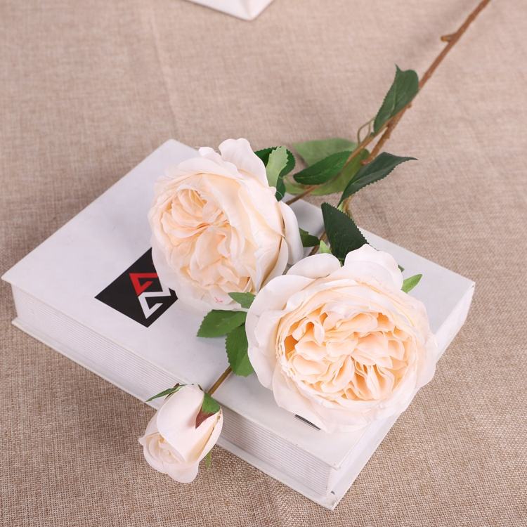 QiHao Wholesale 3 Stems Artificial Flower English Rose David Austin Rose for Home Wedding Decoration
