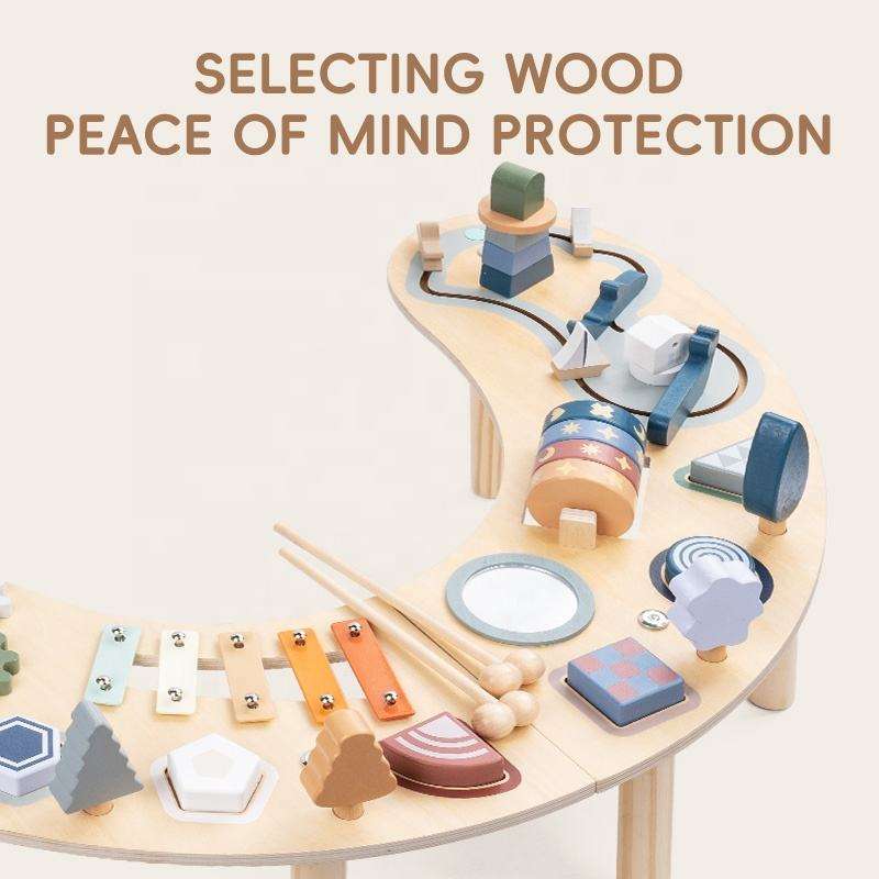 Qiaike Custom Montessori Wooden Sensory Play Table Baby Activity Center Learning Toys for 1+ Year Old Girls Boy Gifts