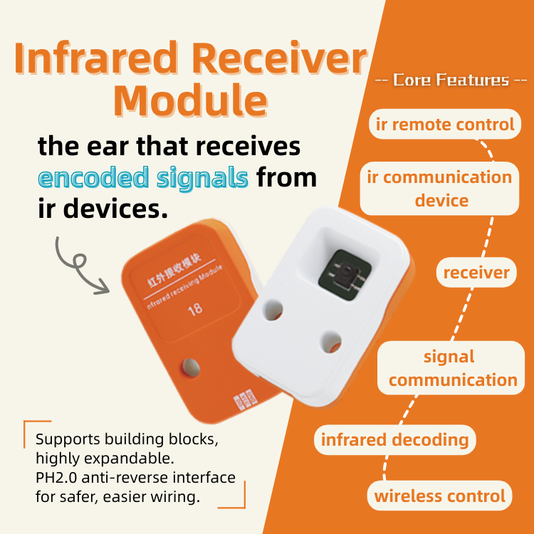 Qimayuan S18 Infrared Receiver Module 3.3V-5V PH2.0 Plug-and-Play 42x26x12mm for AI Education /ESP32 IoT Projects