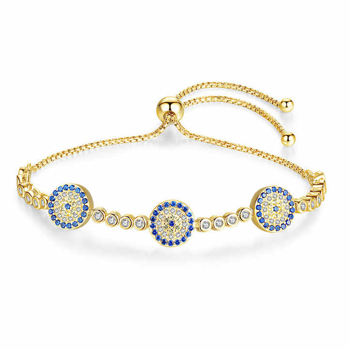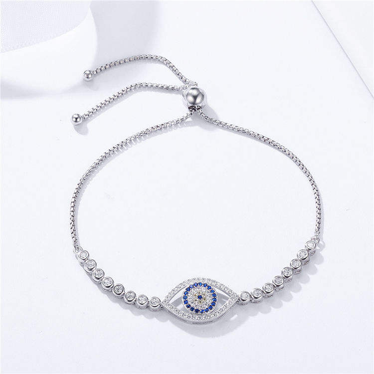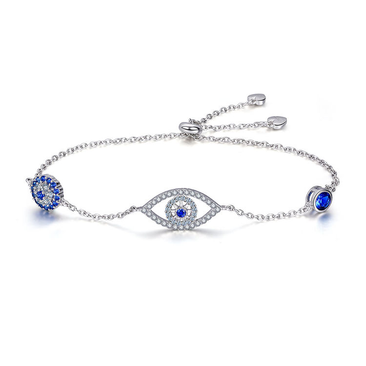 Bracciale Qings in Argento Sterling 925 Regolabile con Occhio Blu Portafortuna e Zirconia Cubica Scintillante per Donne e Ragazze