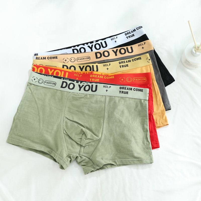 Qingya Plus Size Men's Boxer Briefs Comfortable Breathable Cotton Underwear With Design Logo on Waist Men Boxers