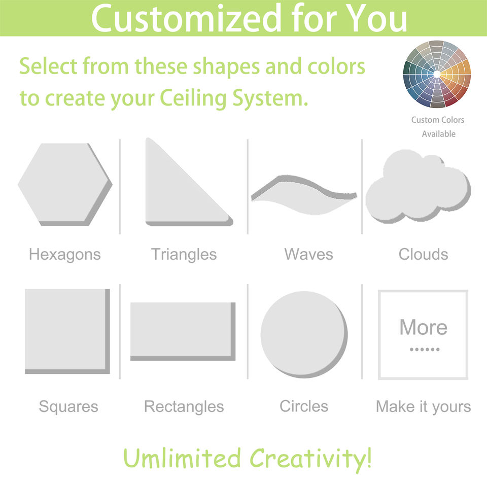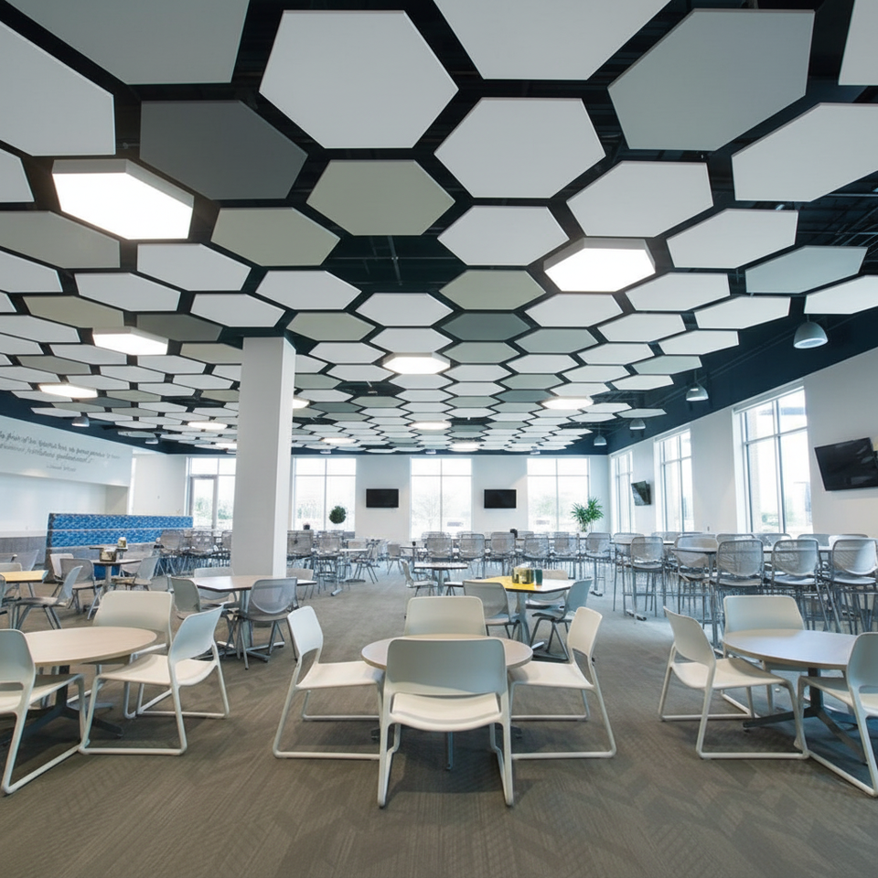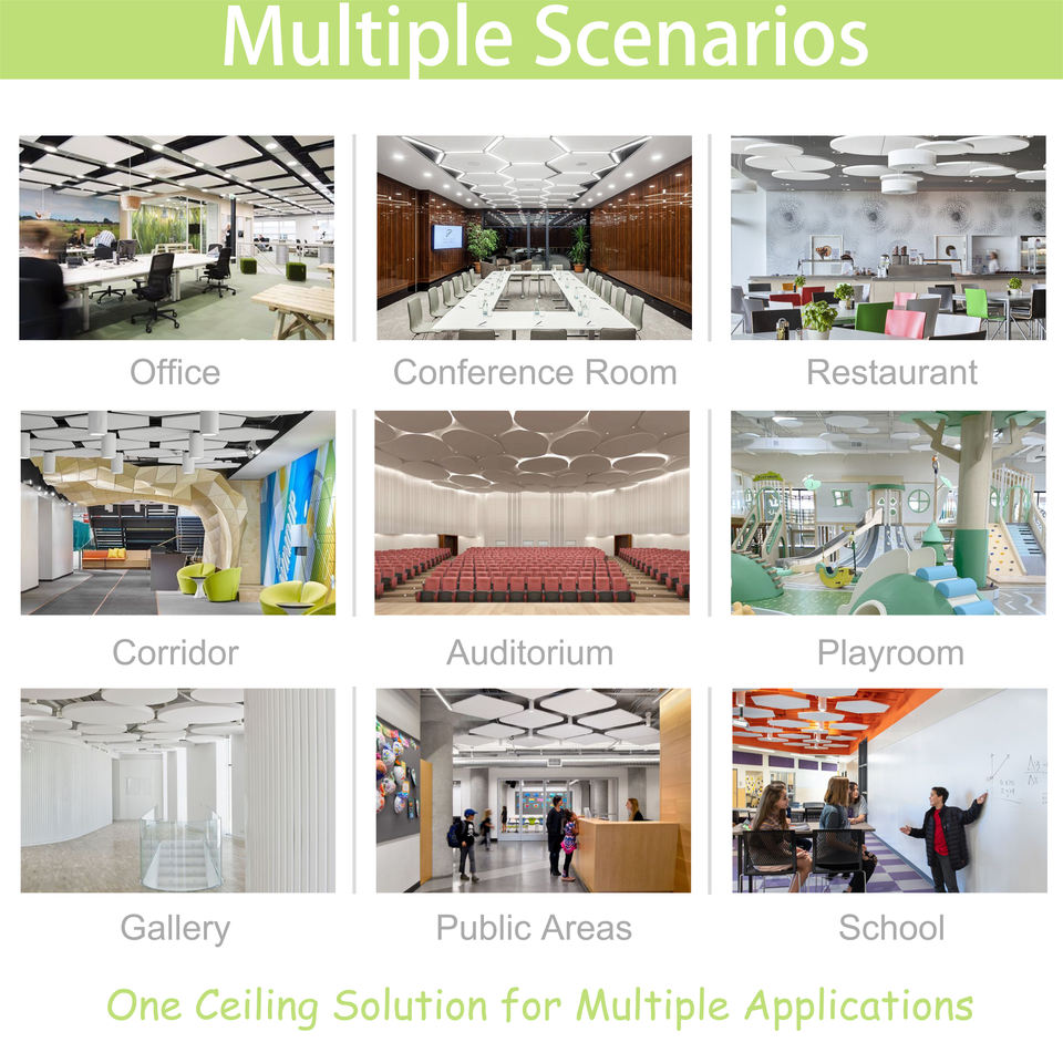 Qinsound esagonale sospeso pannello in fibra di vetro eco-friendly pannelli del soffitto a goccia deflettori per sala banchetti Auditorium