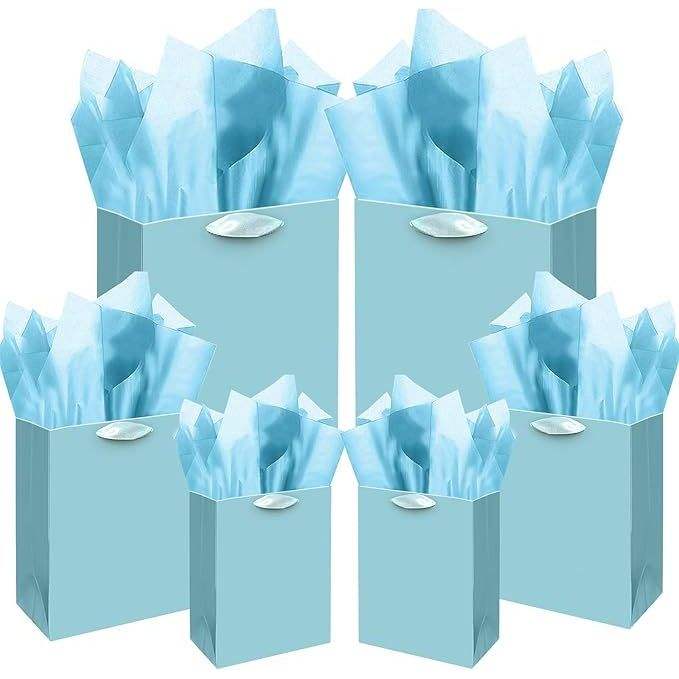 Sacchetti Regalo in Carta Velina Blu Lago Qiqee, Set da 10 Pezzi Multimisura per Regali, Feste di Compleanno e Altre Celebrazioni, Include 2 Grandi