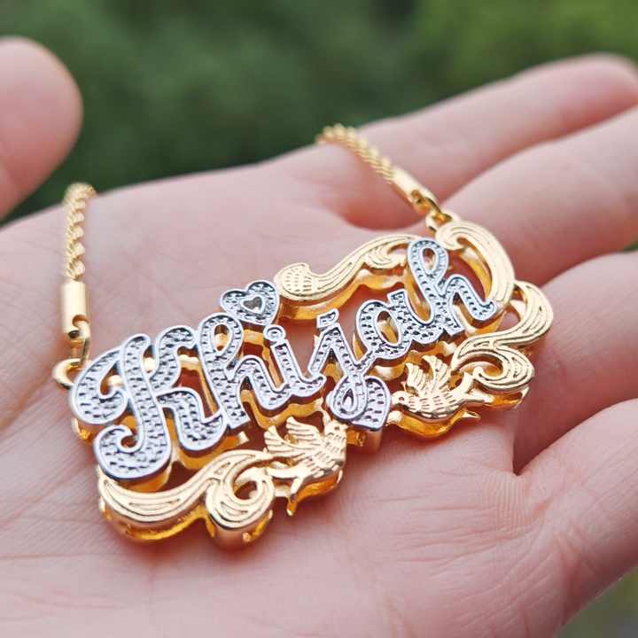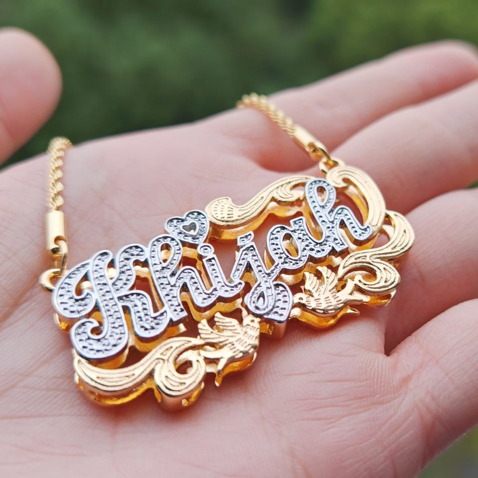 Collana con Ciondolo Personalizzato Qiuhan a Forma di Cuore con Nome, Doppio Strato e Placcatura Bicolore