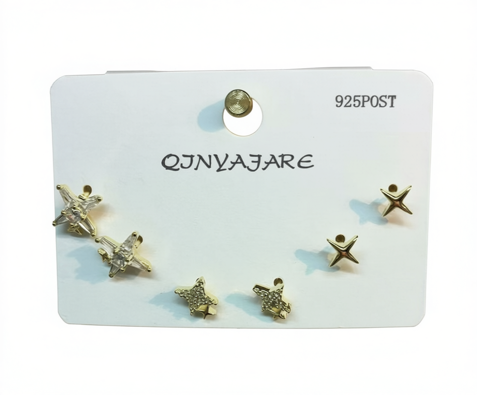 Qjnyajare Star Crystal Earrings 925 Silver Gold Plated French Style Women's Everyday Wear