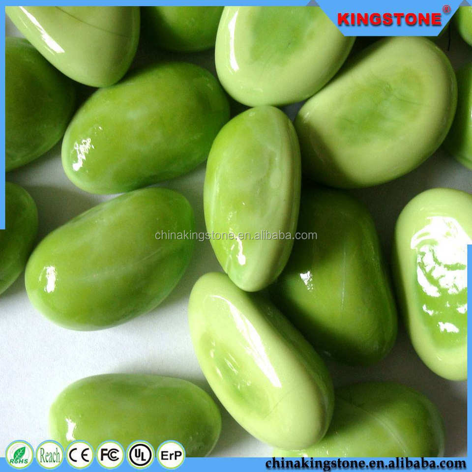Garanzia Della qualità azure vetro pebble, grande verde vetro pebble per giardino, liscia giallo ghiaia