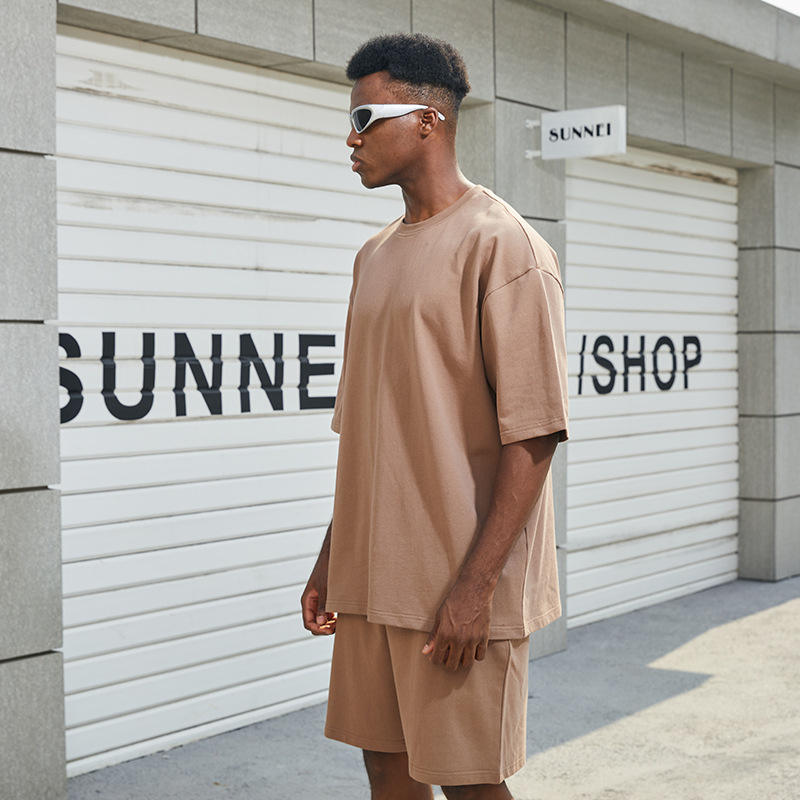 Completo Estivo da Uomo di Qualità Marca ND, 2 Pezzi, 100% Cotone, Pantaloncini e T-Shirt, Tessuto Pesante Lavorato a Maglia con Stampa Digitale a Motivo Uniforme