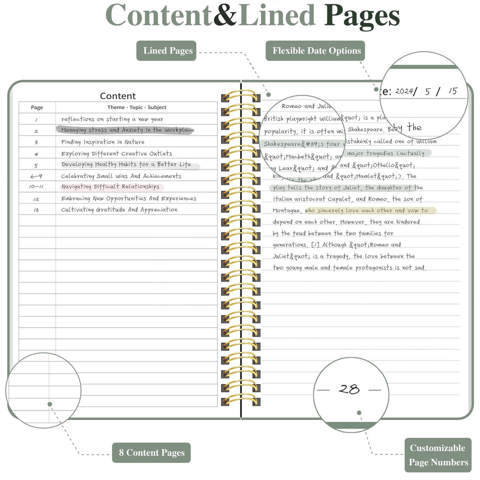 Cucito del filetto, Loose-leaf, Grippaggio a spirale, Legare di cucito, Personalizzato