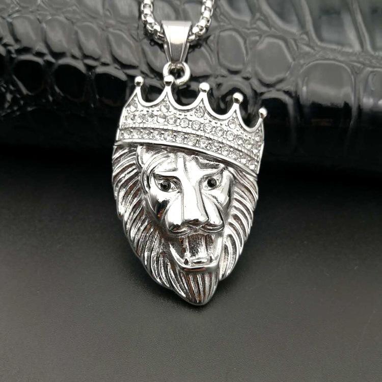 Nome del prodotto:Corona di cristallo in acciaio inossidabile oro leone ciondolo collana per gli uomini