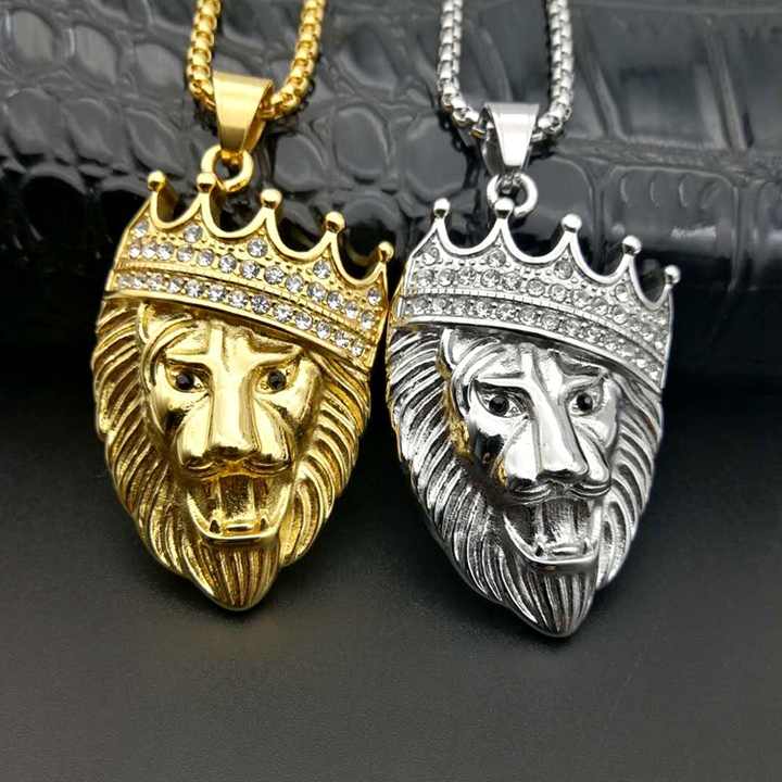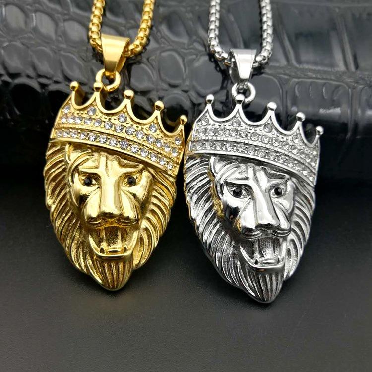 Parole chiave 1:Corona di cristallo oro leone ciondolo collana per gli uomini