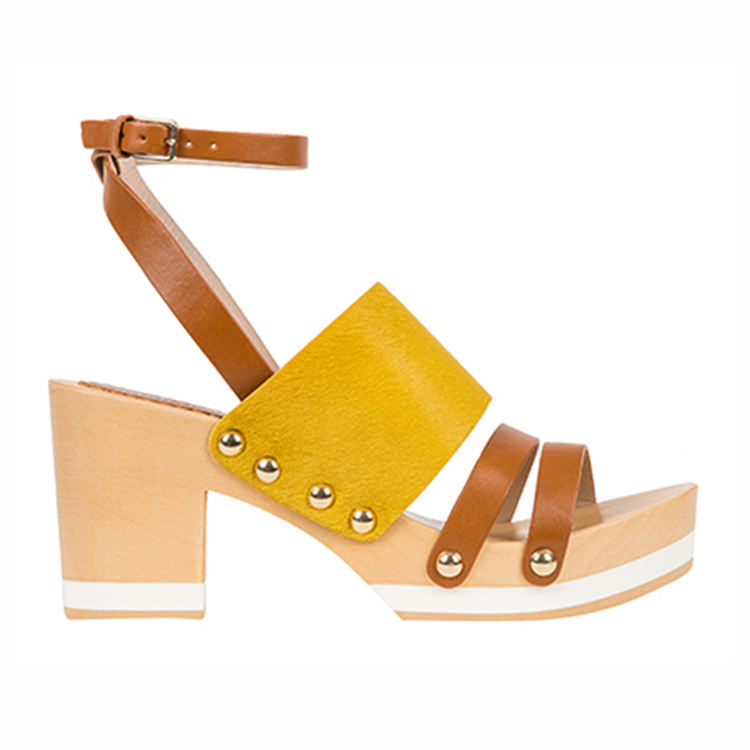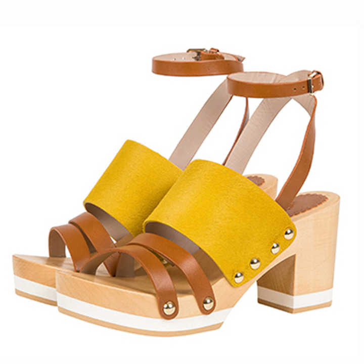 Quality Supplier New Fashion for Summer Yellow and Tan Color Women High Heel Wooden Sandals