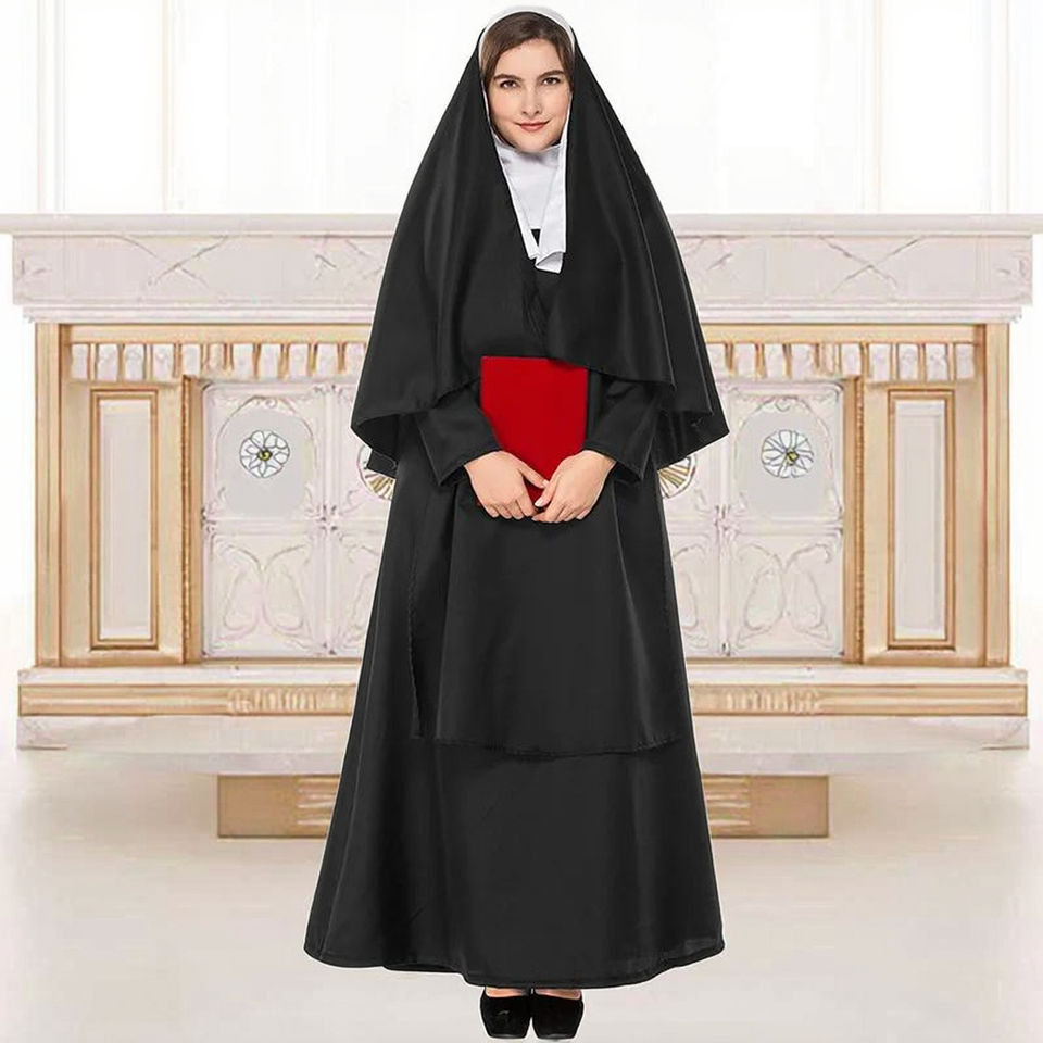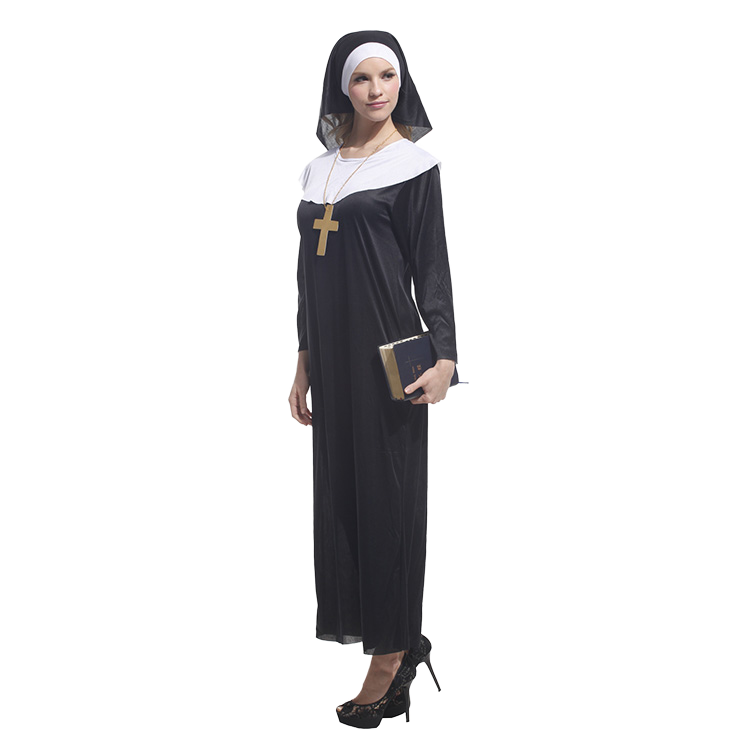 Quality Women Adult TV Movie Costumes Special Halloween Party Cloak Nuns Veil Christian Cross Designed Pastors Polyester Trising