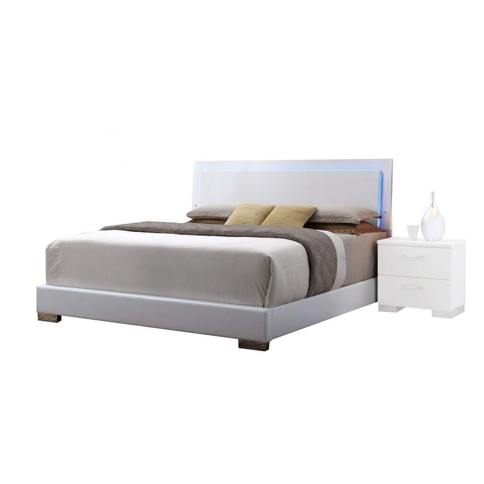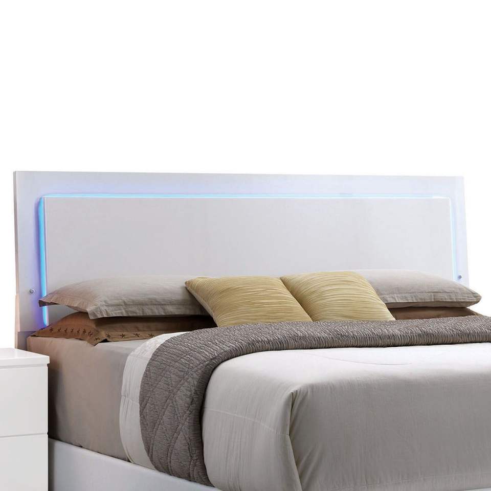 Letto Matrimoniale Bianco con Testiera Illuminata a LED, Letti in Legno