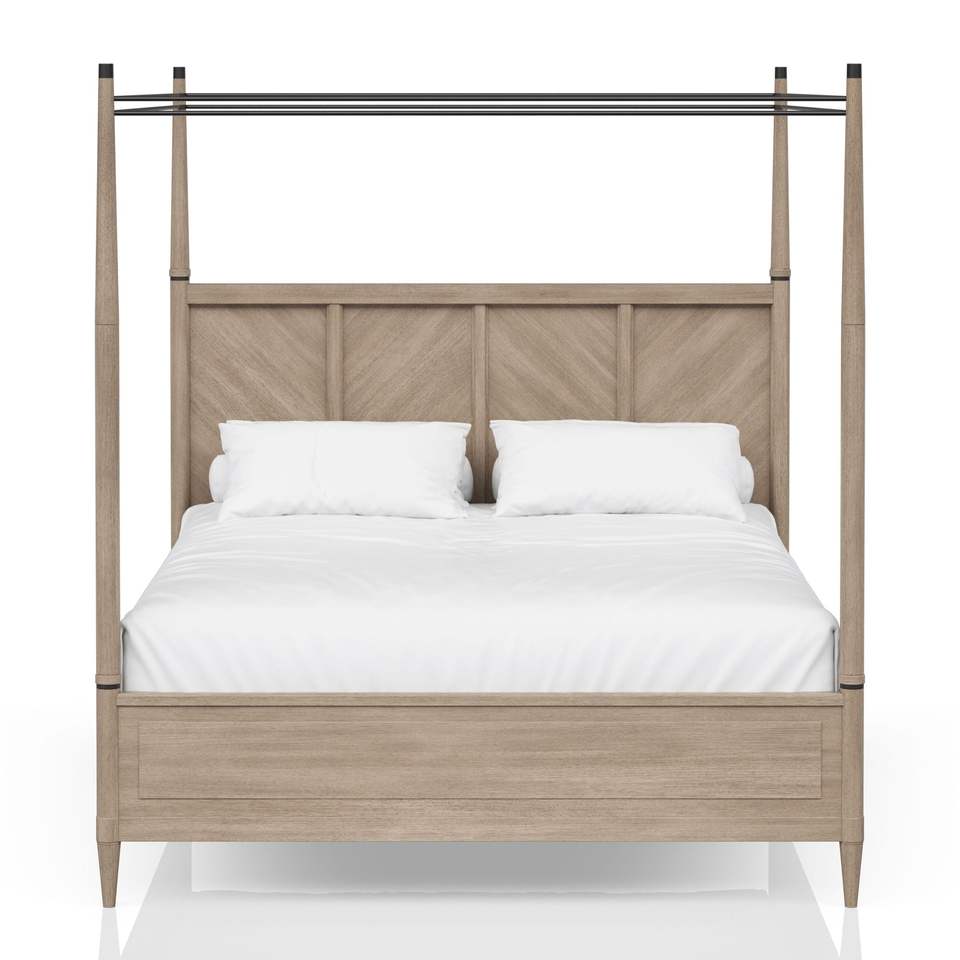 Letto a baldacchino Queen in finitura sabbia, elegante mobile per camera da letto