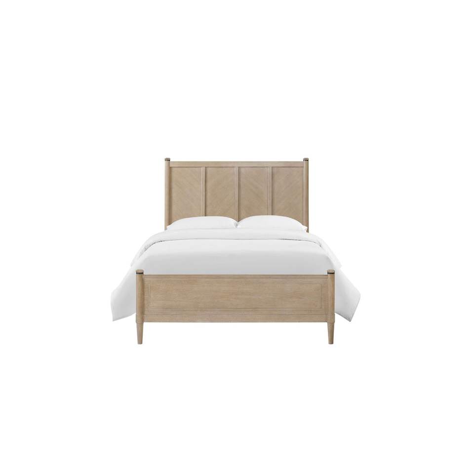 Letto matrimoniale in legno con testiera in stile rustico, finitura color sabbia