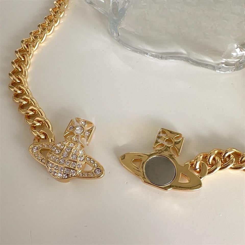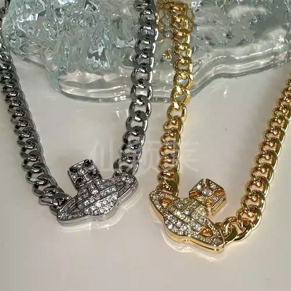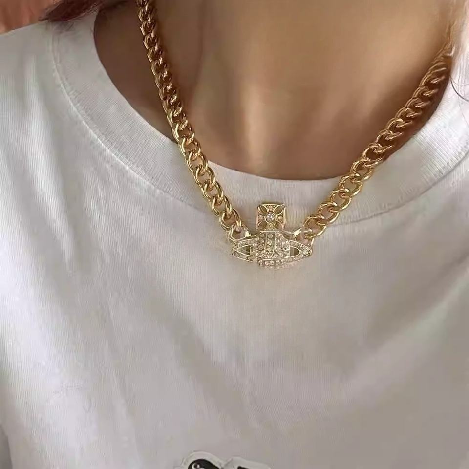 Collana Saturno Tridimensionale della Regina Madre Vivienne, Ciondolo in Rame e Zirconi, Catena a O, Stile Punk Versatile