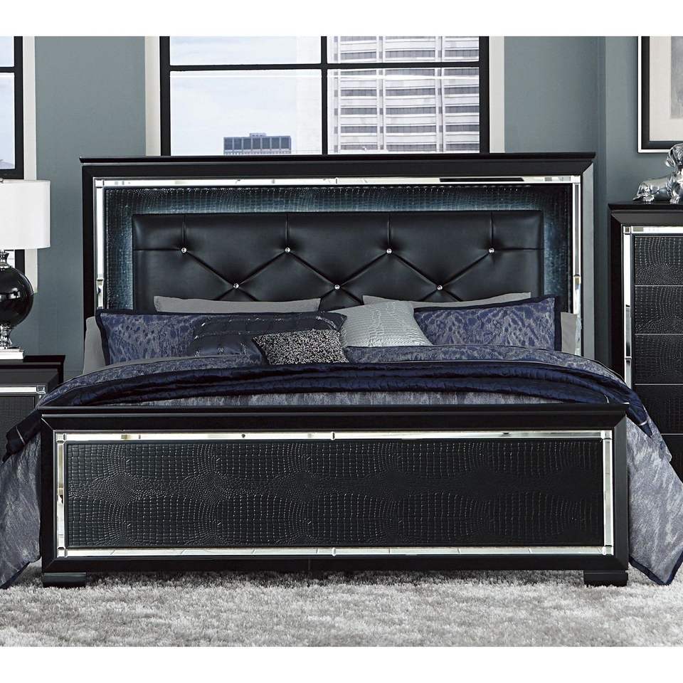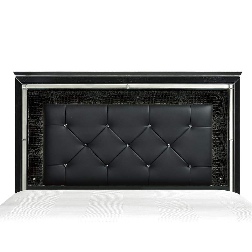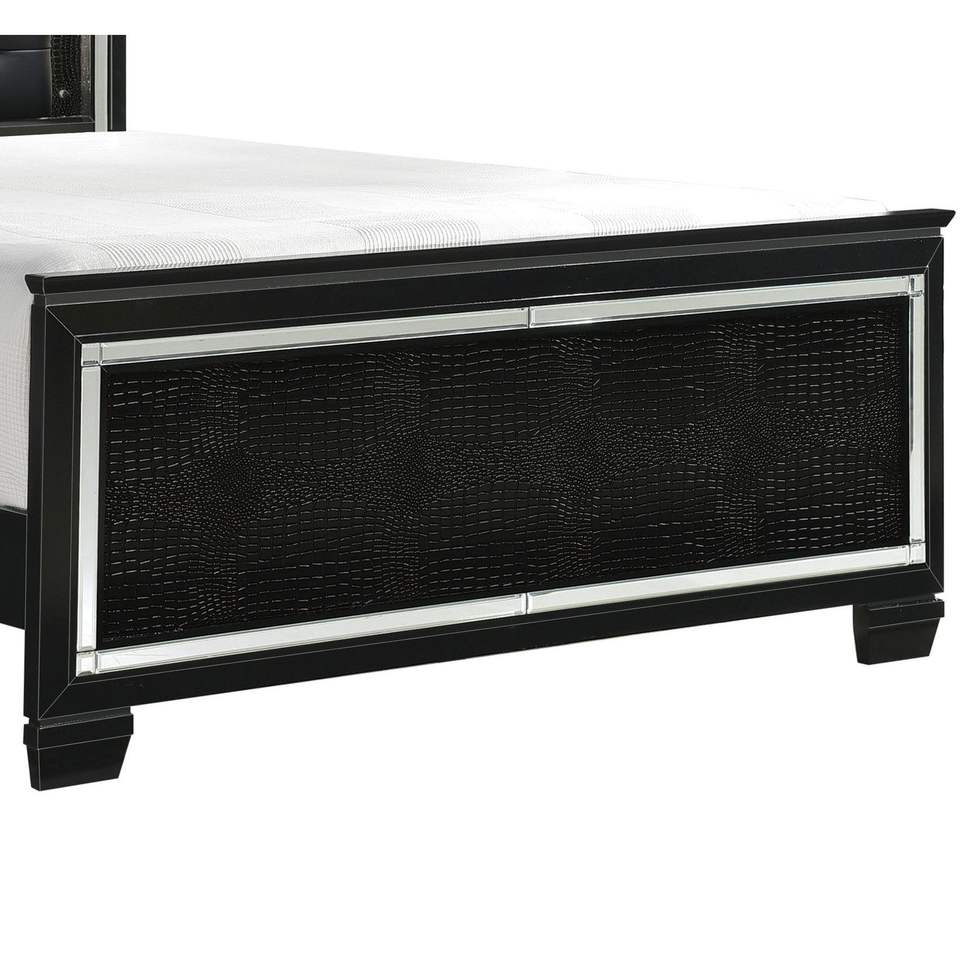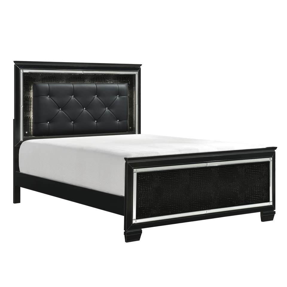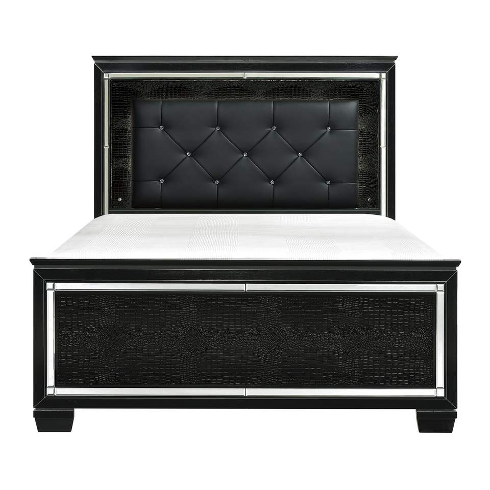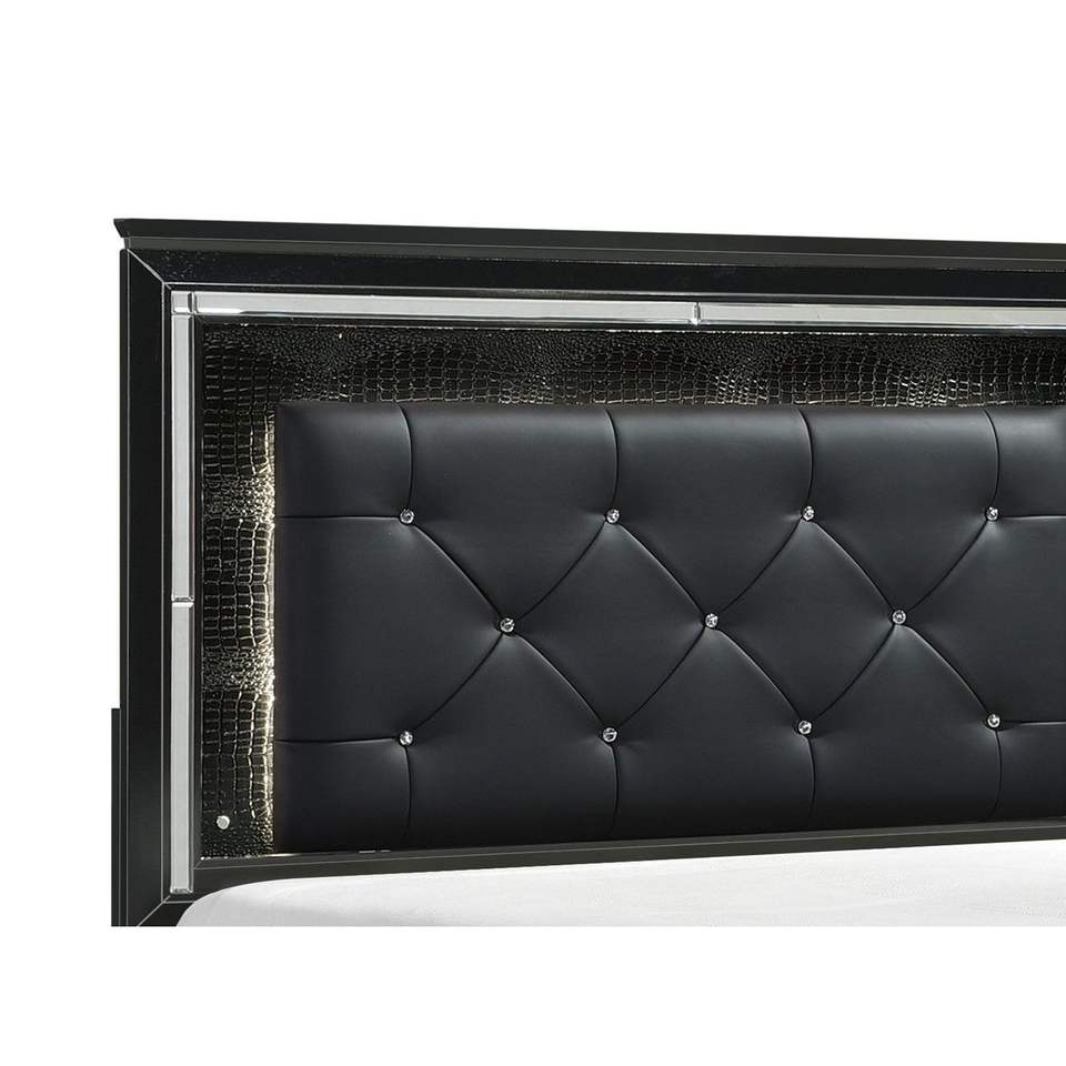 Letto Queen Size con Testiera LED, Finitura Nera, Imbottito con Bottoni, 1 Pezzo, Letto in Legno con Pannelli Testurizzati Effetto Alligatore