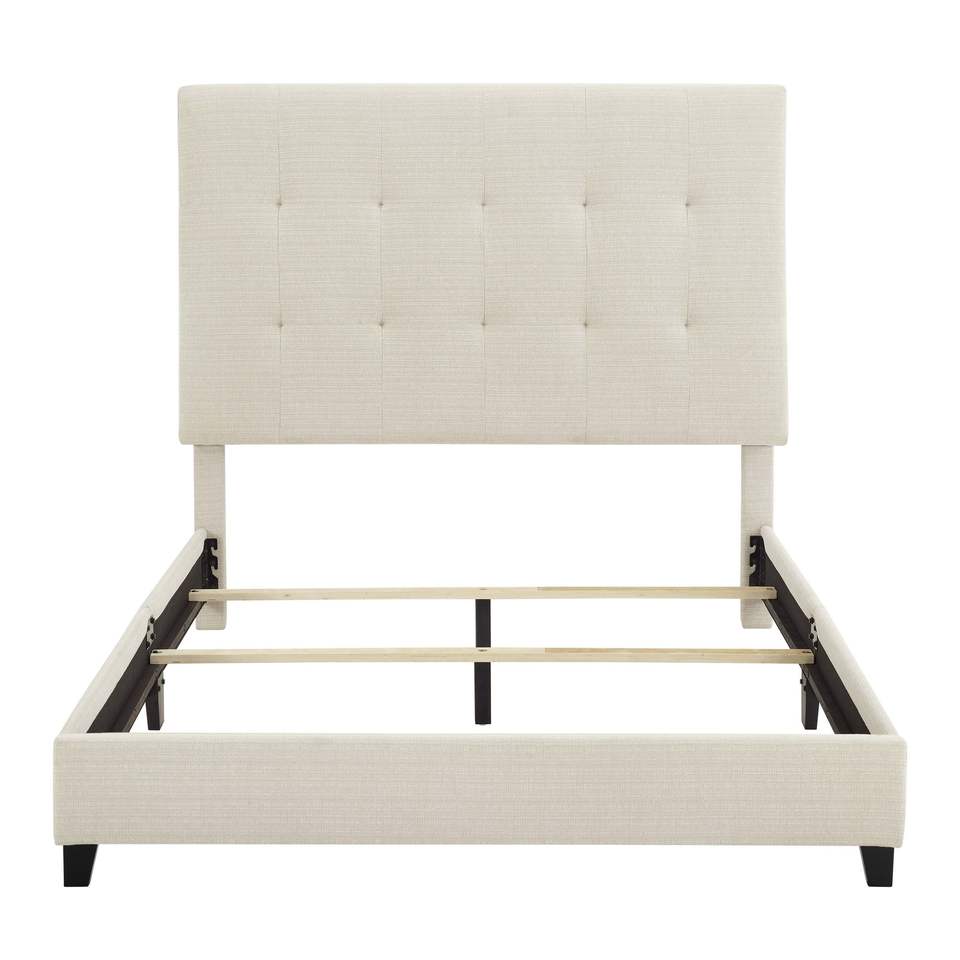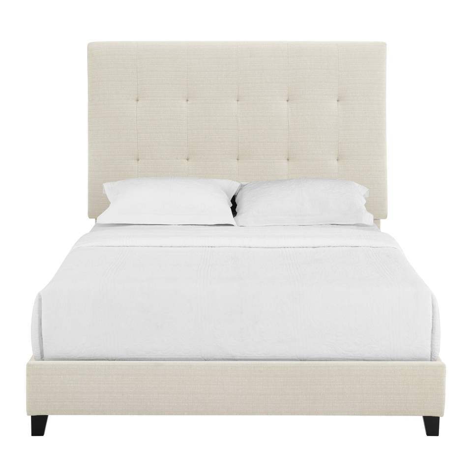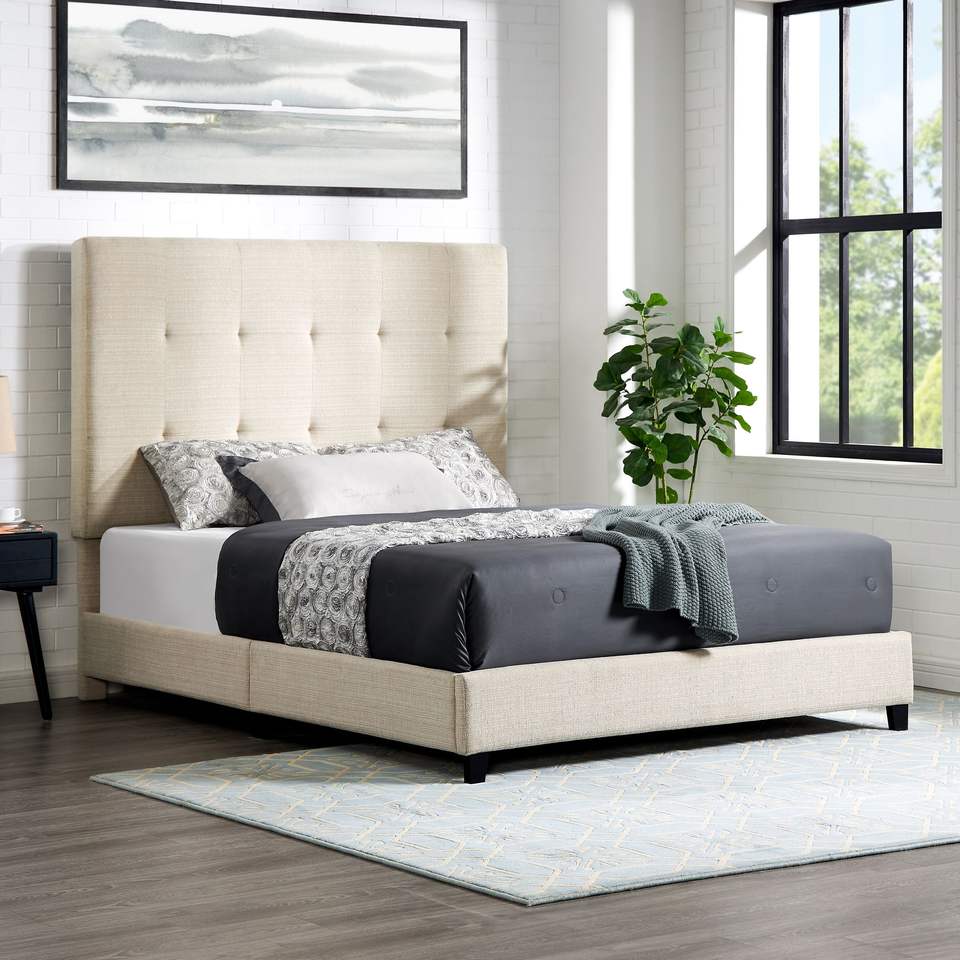 Letto matrimoniale imbottito beige trapuntato con piattaforma di Bridgevine Home, letti imbottiti resistenti