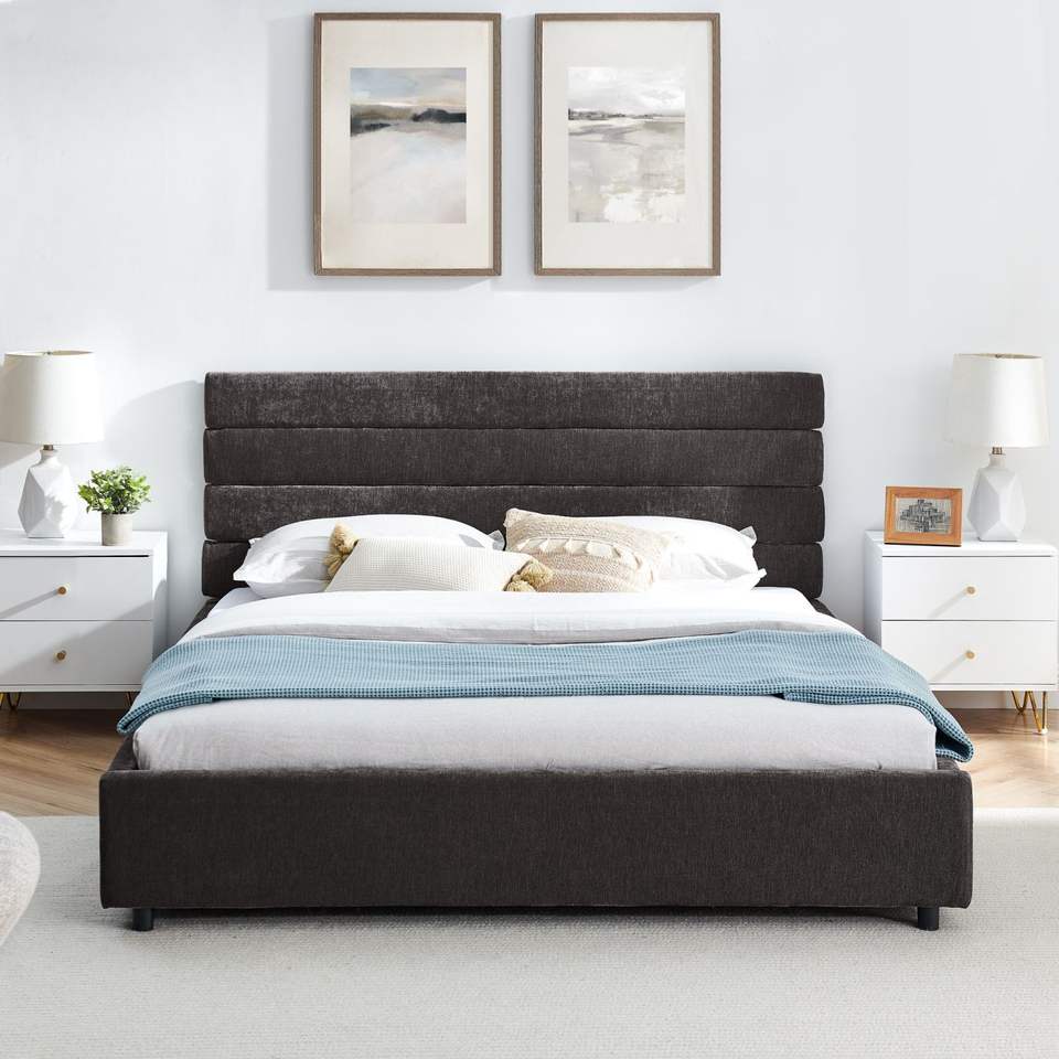 Letto imbottito Queen Size Beige confortevole testiera imbottita solida 85 \ "x 66 \" x 36 \ "letto migliorato leggibilità