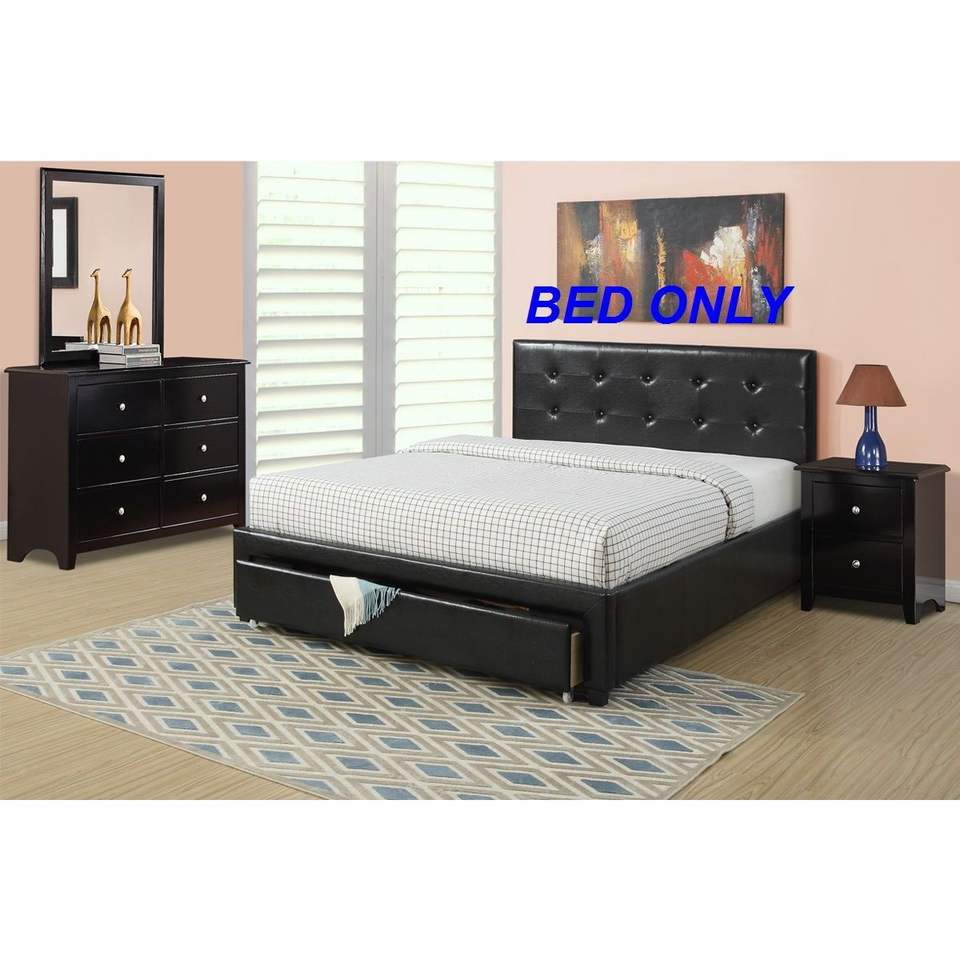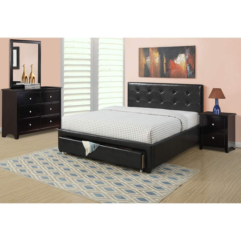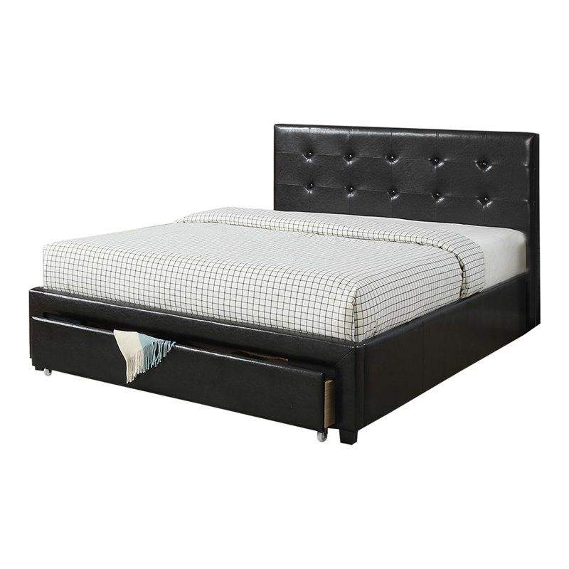 Letto matrimoniale imbottito in similpelle nera con contenitore sotto il letto, mobili per camera da letto