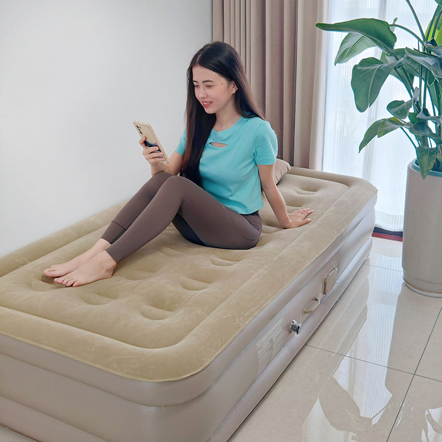 Queen Size pieghevole gonfiabile con materassino ad aria e materassino integrato con pompa 110V floccato per camera da letto per ospiti mobili da soggiorno