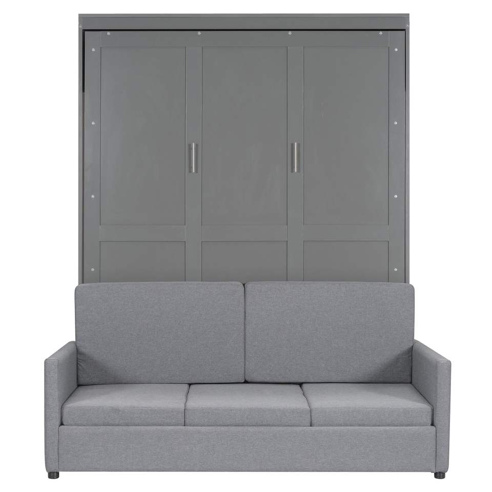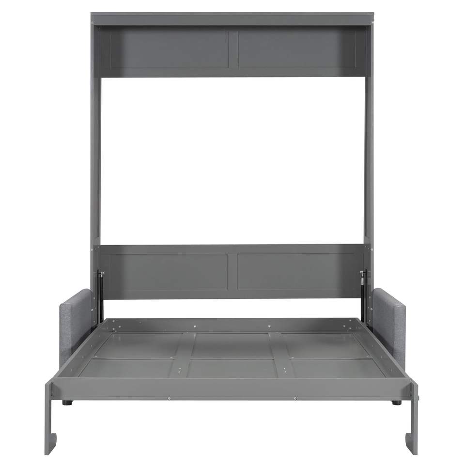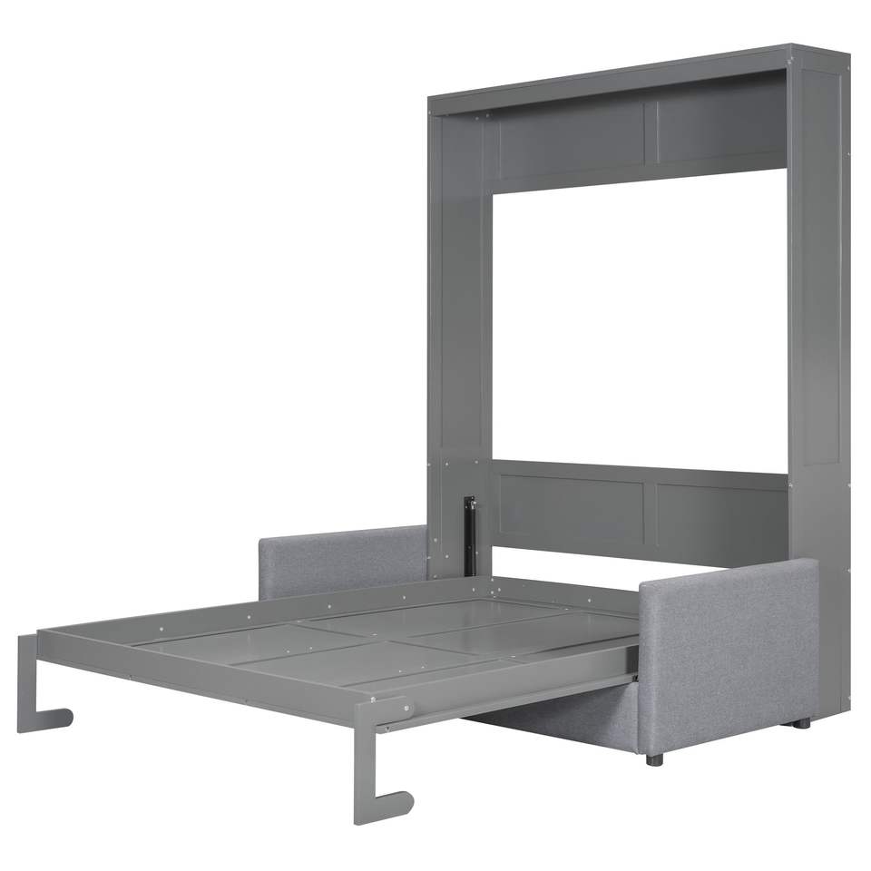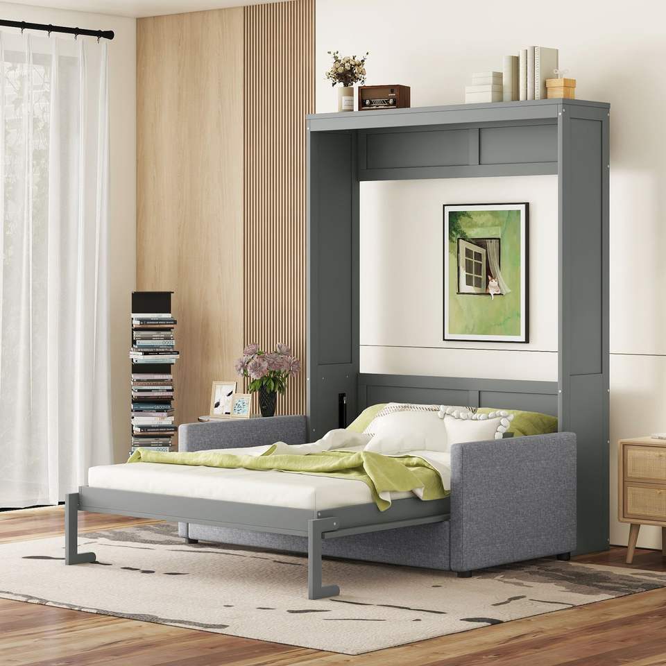 Letto a scomparsa matrimoniale grigio con cuscino, comodo divano letto grigio