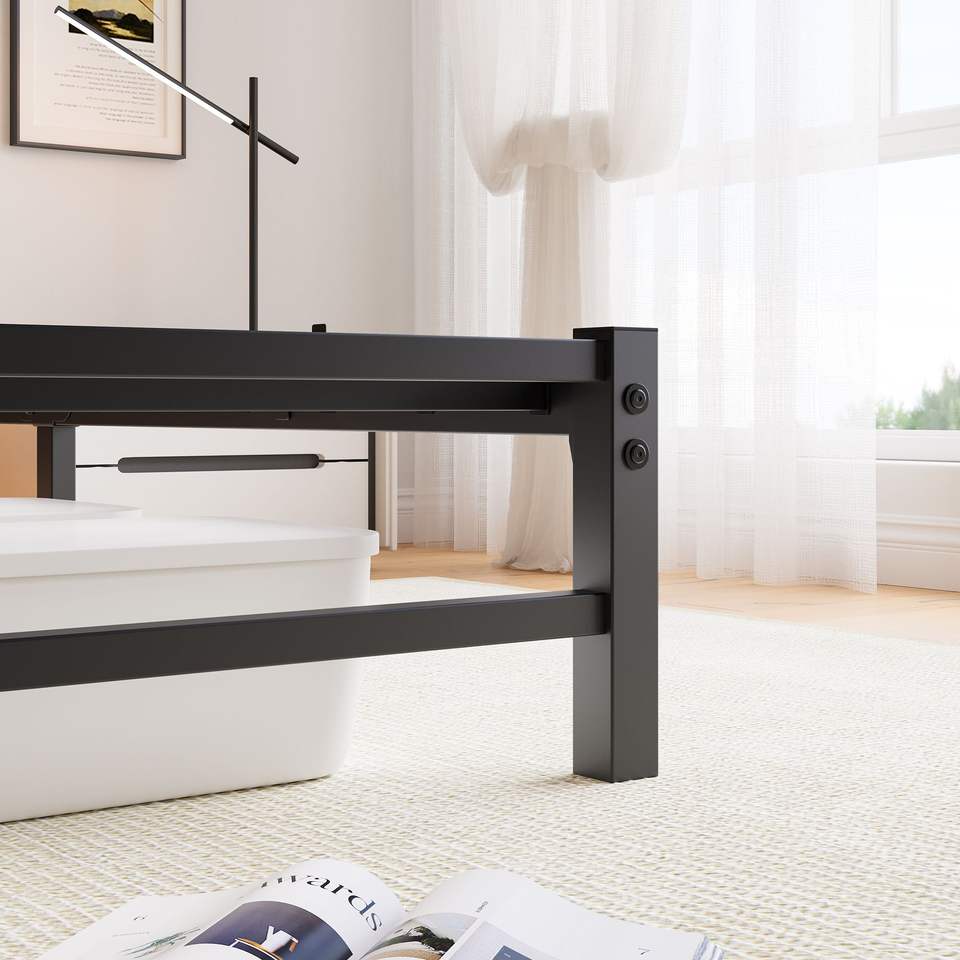 Struttura letto matrimoniale in metallo con testiera in legno e luci RGB, ripiano di ricarica silenzioso, non richiede rete a molle, stile rustico