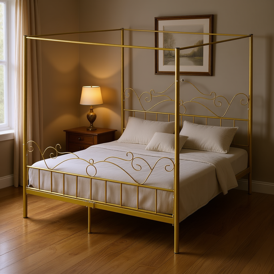 Letto a baldacchino matrimoniale in metallo a quattro montanti, design tradizionale, costruzione stabile, modello D0100XUYB8U