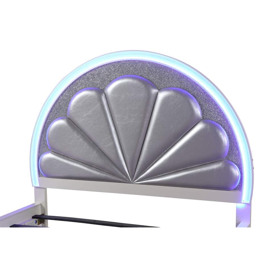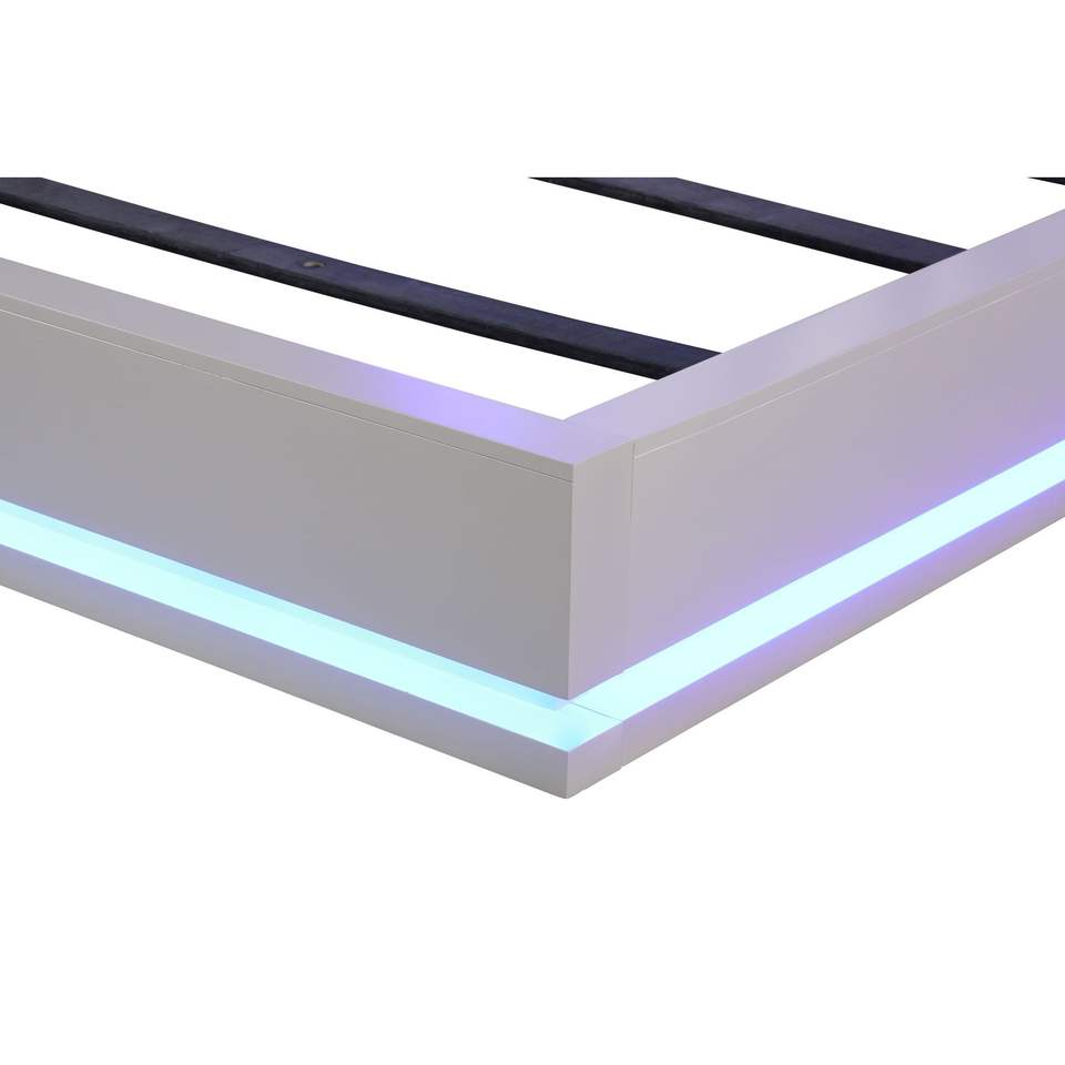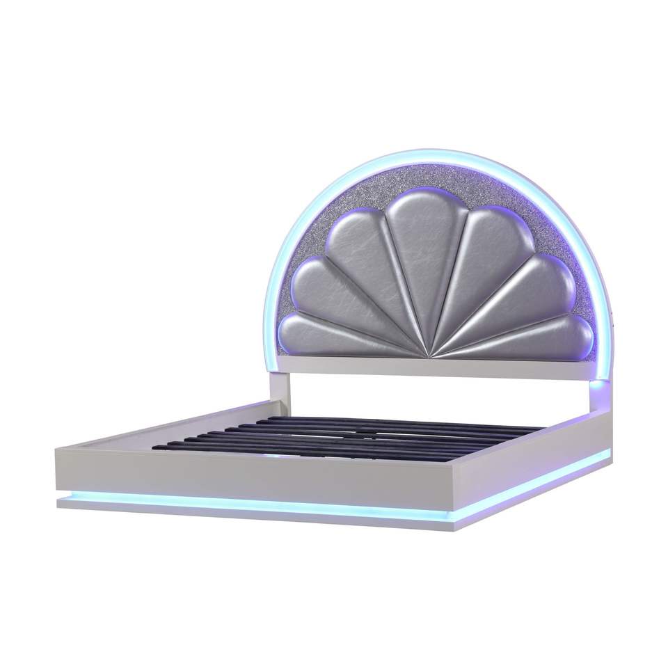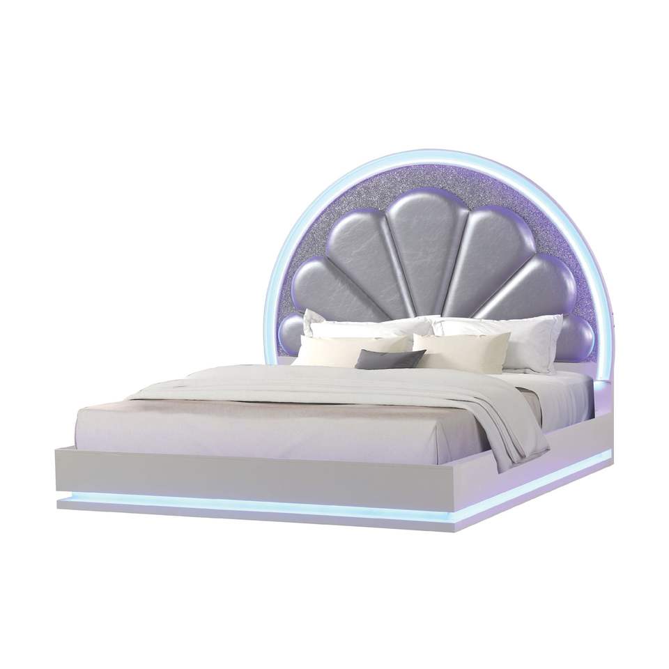 Letto matrimoniale imbottito in legno bianco latte con LED