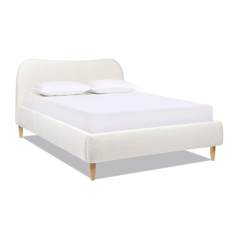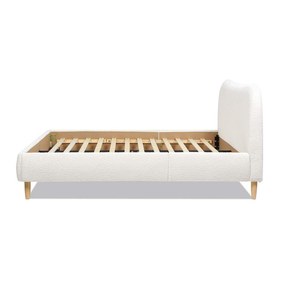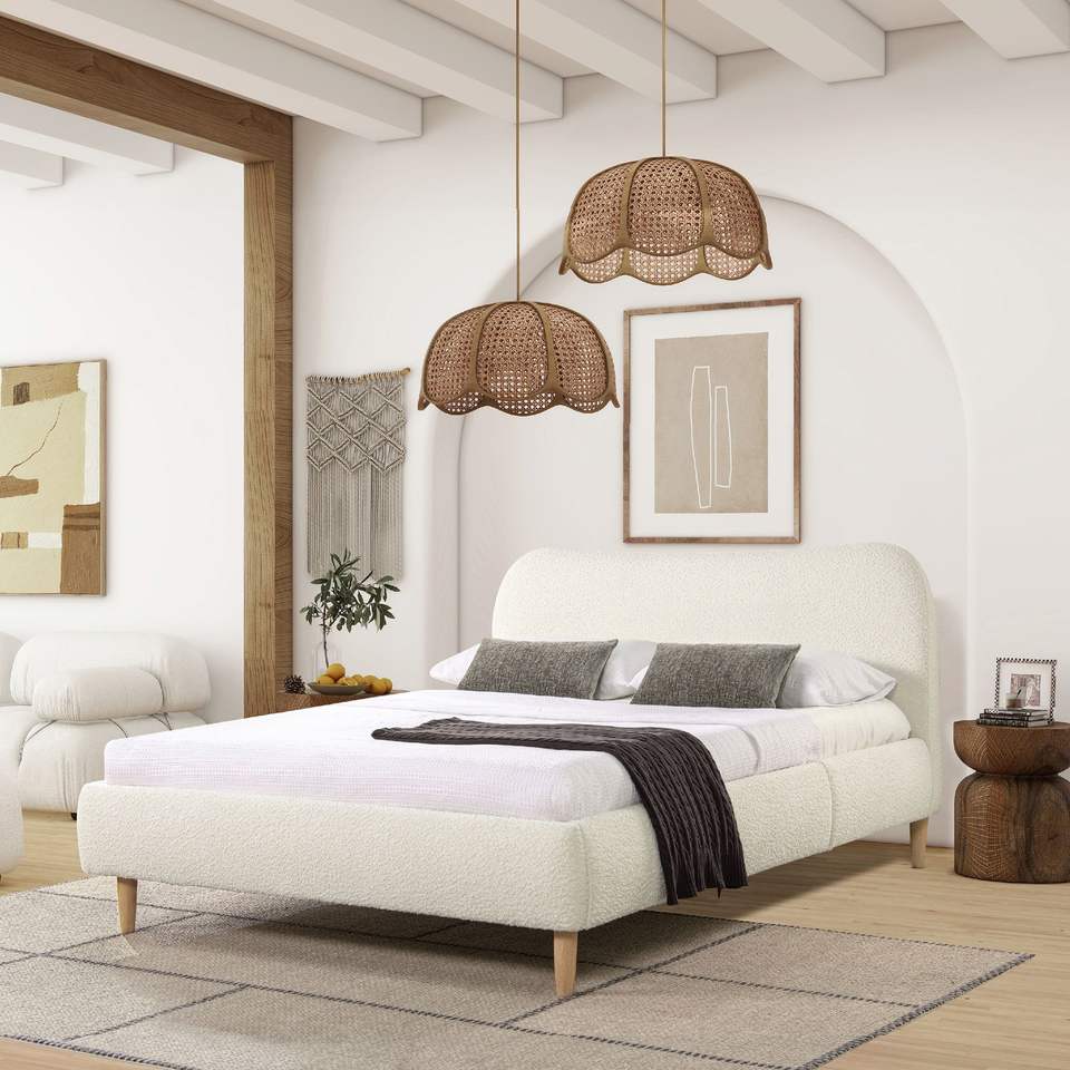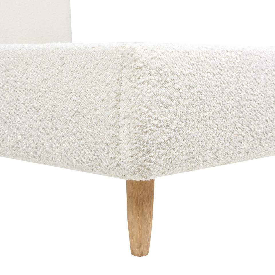 Letto matrimoniale imbottito in bouclé bianco avorio con testiera curva in stile romano - Serie Letti Imbottiti