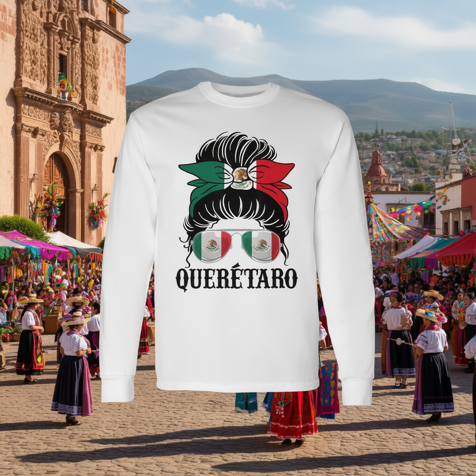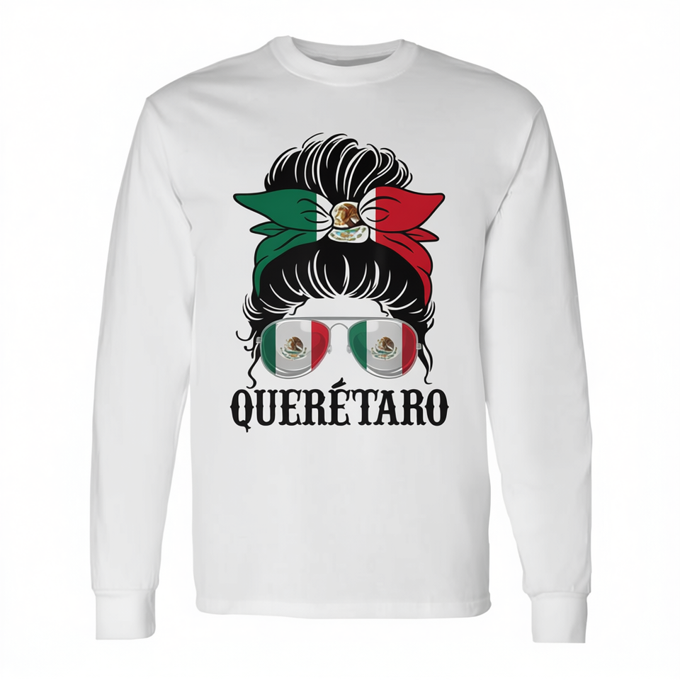Maglietta a maniche lunghe con bandiera messicana dell'entusiasmo di Querétaro, Messico