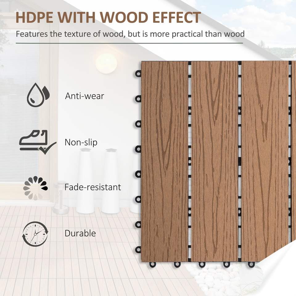Piastrelle per Pavimento da Esterno in Composito Legno-Plastica a Incastro Rapido 12"x12" 11 Pezzi Stile Teak
