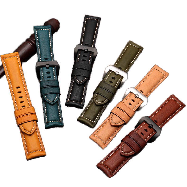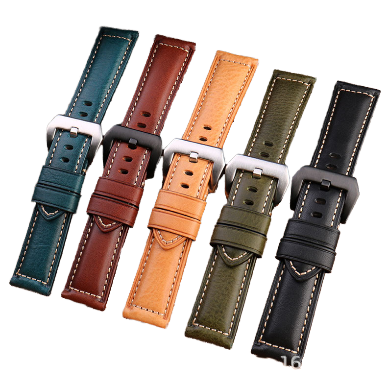 Quick Release Crazy Horse Genuine Leather Watch Band Orange/Yellow 18/20/22/24mm Sport Watches Strap with Steel & PC Material