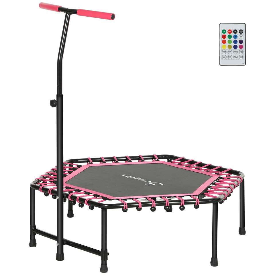 Trampolino Elastico Silenzioso da 45 Pollici per Adulti con Luci LED e Maniglia Rosa Regolabile