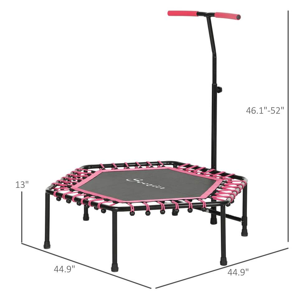 Trampolino Elastico Silenzioso da 45 Pollici per Adulti con Luci LED e Maniglia Rosa Regolabile