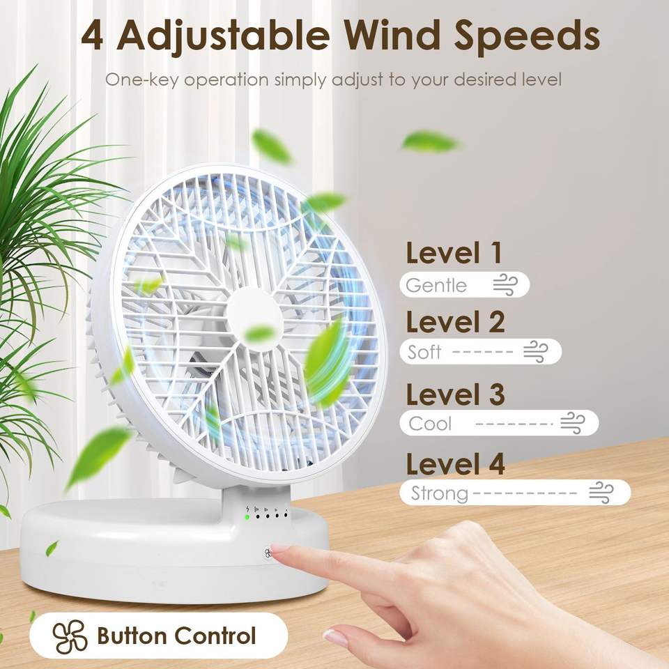 Ventilatore da Tavolo Pieghevole a 90 Gradi Silenzioso, 4 Velocità, Ricaricabile USB-C, Portatile da Parete e da Scrivania, Design Indossabile