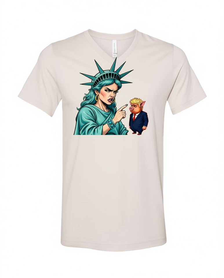 T-shirt Grafica Quiet Piggy Liberty Edition Unisex con Scollo a V, Manica Corta, 100% Cotone, Stampa Frontale con Design a Tema Personaggio