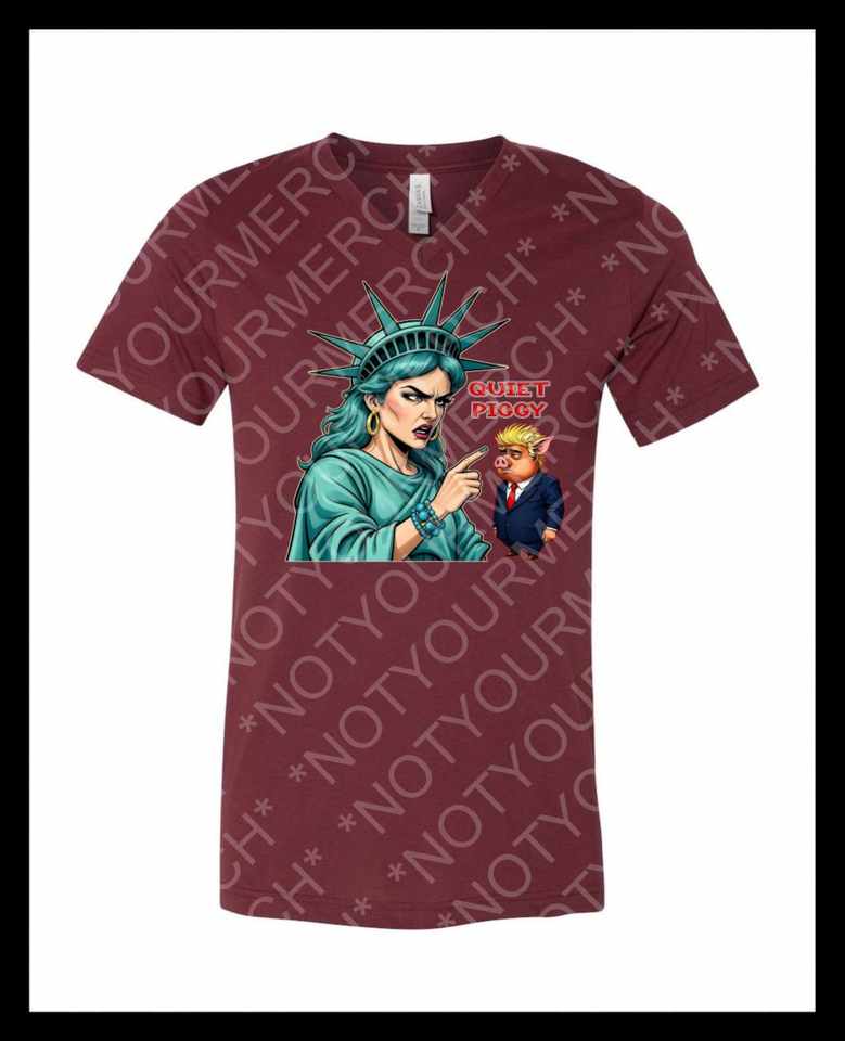 Quiet Piggy Liberty Edition V-Neck T-Shirt Unisex Adult Short Sleeve Graphic Print Digital Printing Promotional Apparel